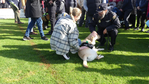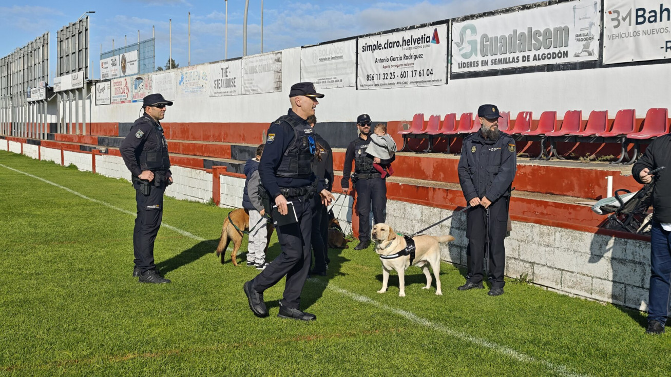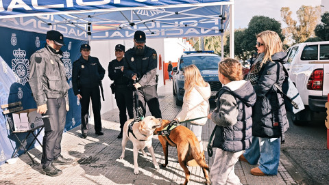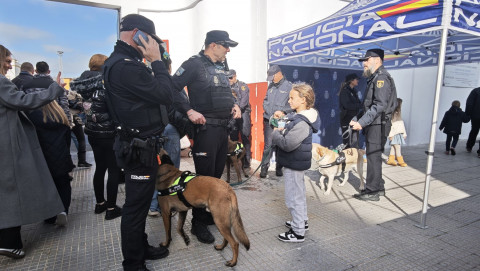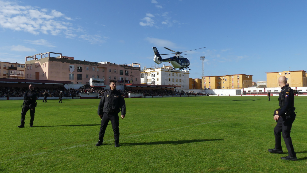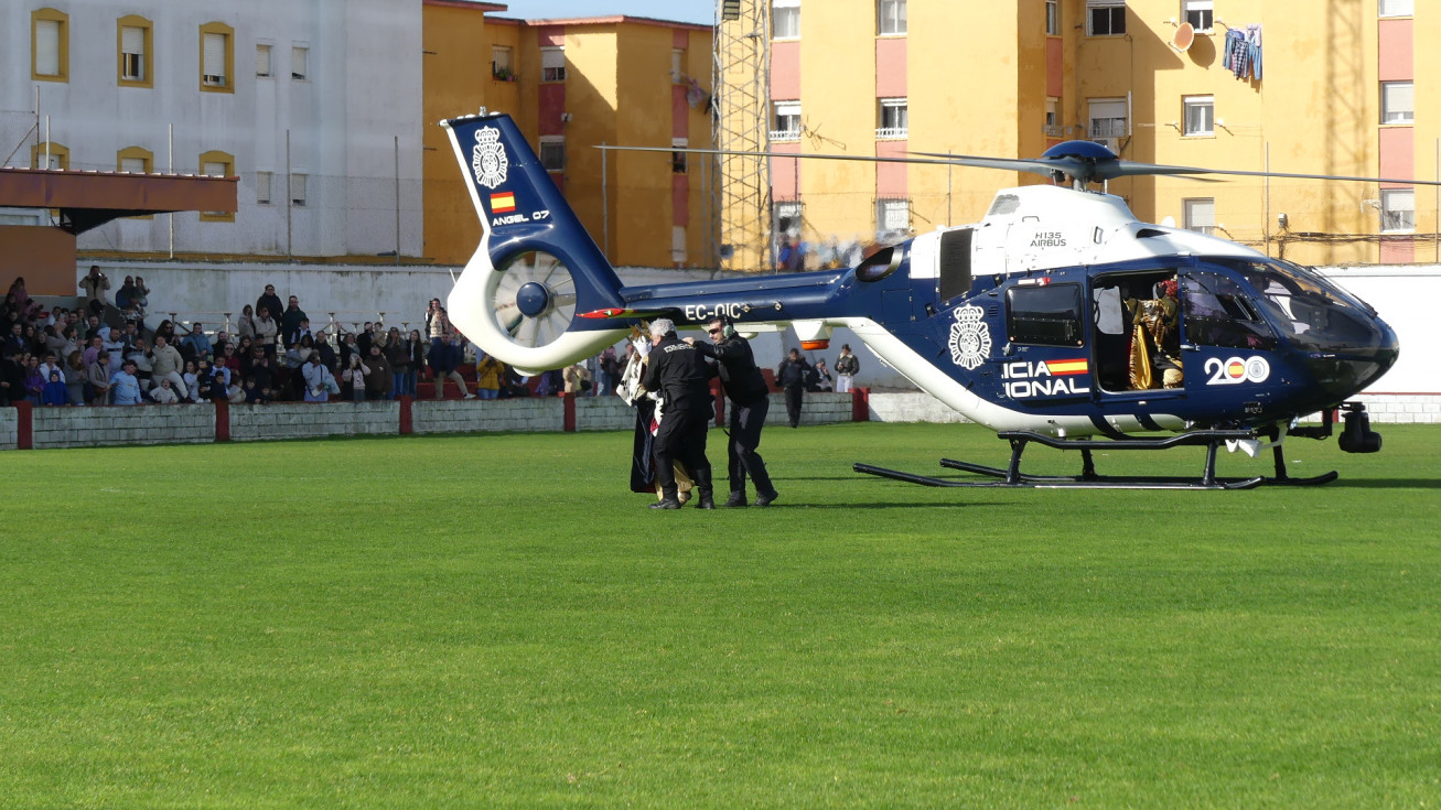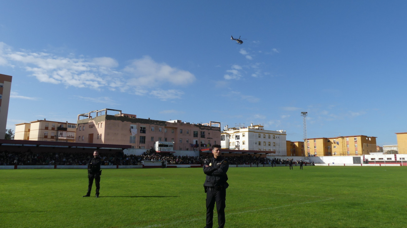 Muchos ciudadanos llenaban las gradas del campo de fútbol de la U.D. Roteña desde mucho antes de las 12 para coger sitio y mientras, agentes de la Policía Nacional han estado entreteniendo al público con varios perros policías, expertos en rescate, detección de drogas y explosivos, con los que han podido fotografiarse e incluso jugar. Ha sido una forma amena en este tiempo de espera con la que ha colaborado la Policía que se ha encargado de mantener los perímetros de seguridad necesarios para que el helicóptero aterrizara en Rota. Lo ha hecho pasadas las 12 del mediodía y es cuando se ha desatado la euforia y la alegría, a partes iguales, entre niños y mayores.