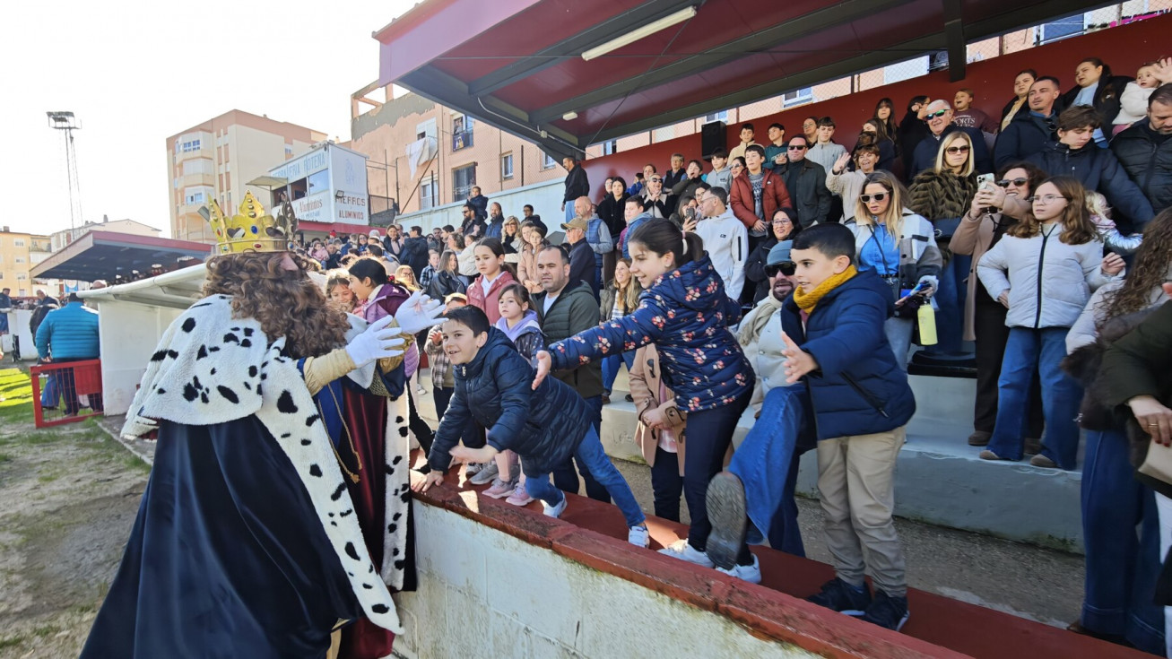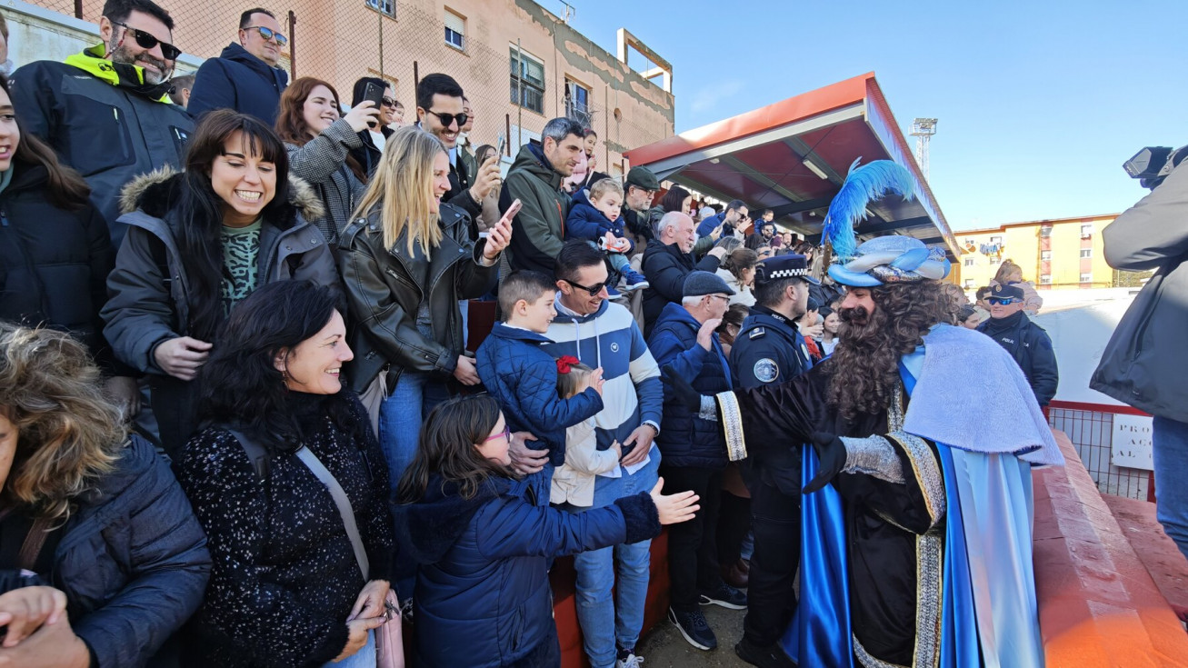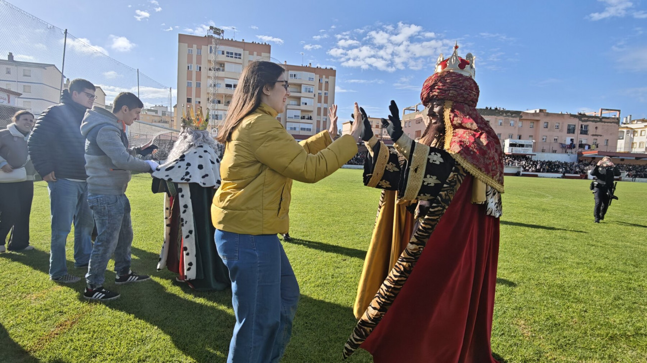 Con Sus Majestades pisando tierra firme, los primeros que han tenido la oportunidad de saludarlos, gracias a la colaboración de ASACRO, han sido los chicos de la Asociación de Personas con Discapacidad de Rota y del centro de Afanas, que han tenido un lugar privilegiado, aunque después, los cinco protagonistas de la mañana, ha recorrido las gradas del estadio "Manuel Bernal Sánchez-Romero" saludando a todos los ciudadanos que los esperaban.