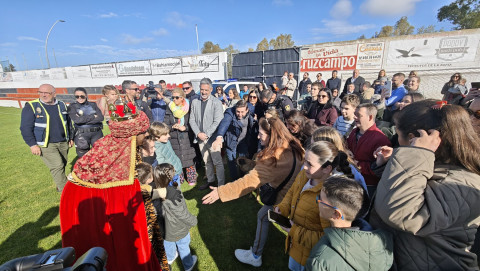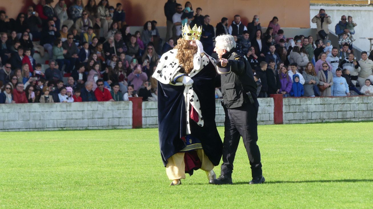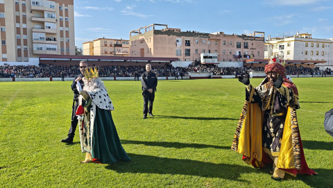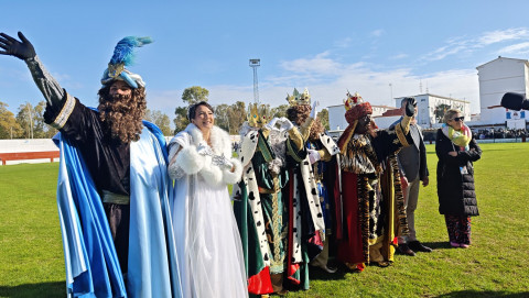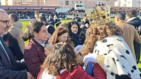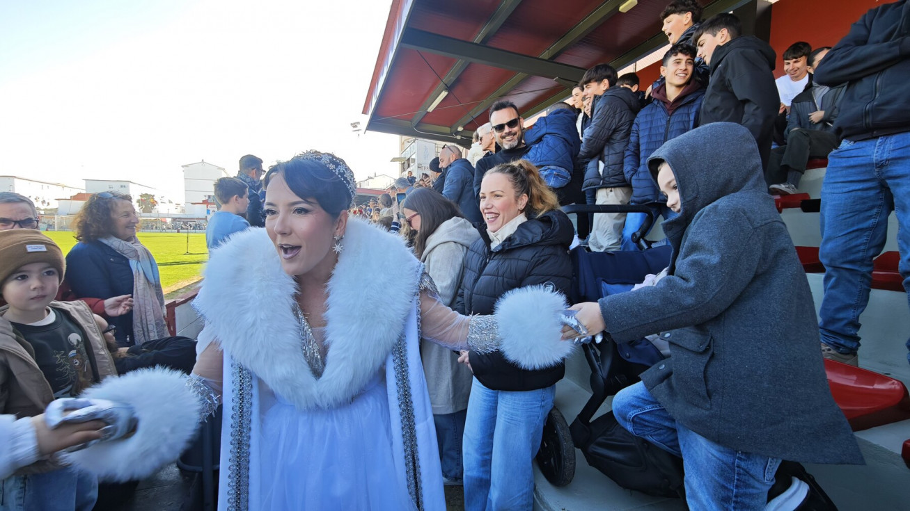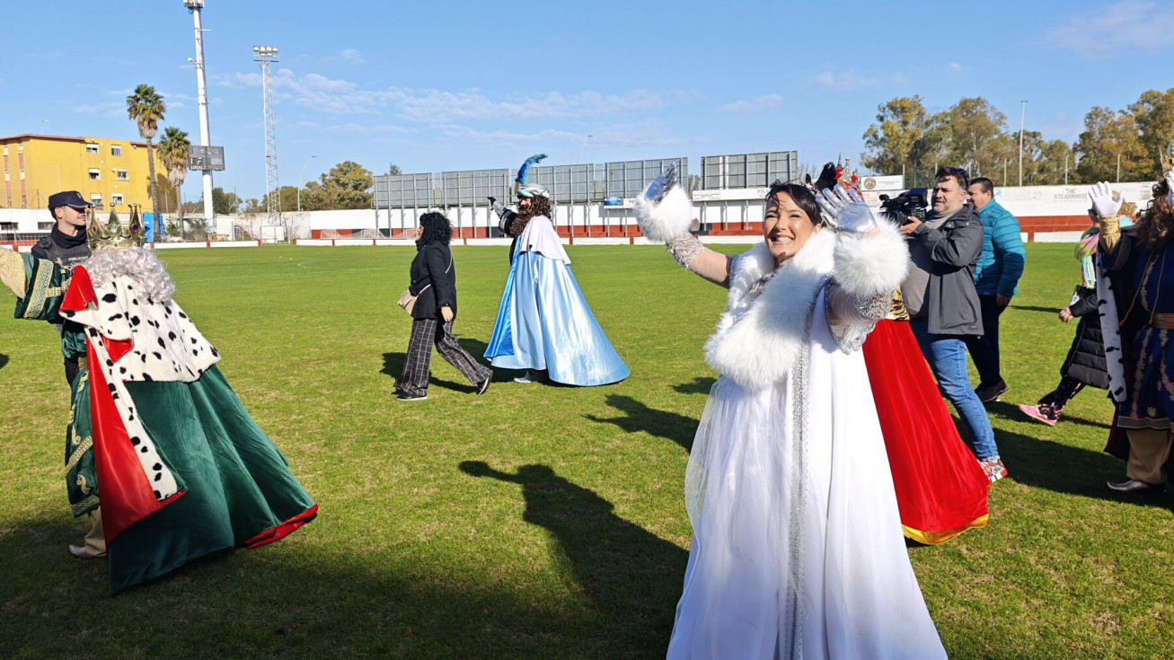 Con Sus Majestades pisando tierra firme, los primeros que han tenido la oportunidad de saludarlos, gracias a la colaboración de ASACRO, han sido los chicos de la Asociación de Personas con Discapacidad de Rota y del centro de Afanas, que han tenido un lugar privilegiado, aunque después, los cinco protagonistas de la mañana, ha recorrido las gradas del estadio "Manuel Bernal Sánchez-Romero" saludando a todos los ciudadanos que los esperaban.