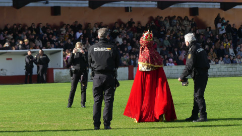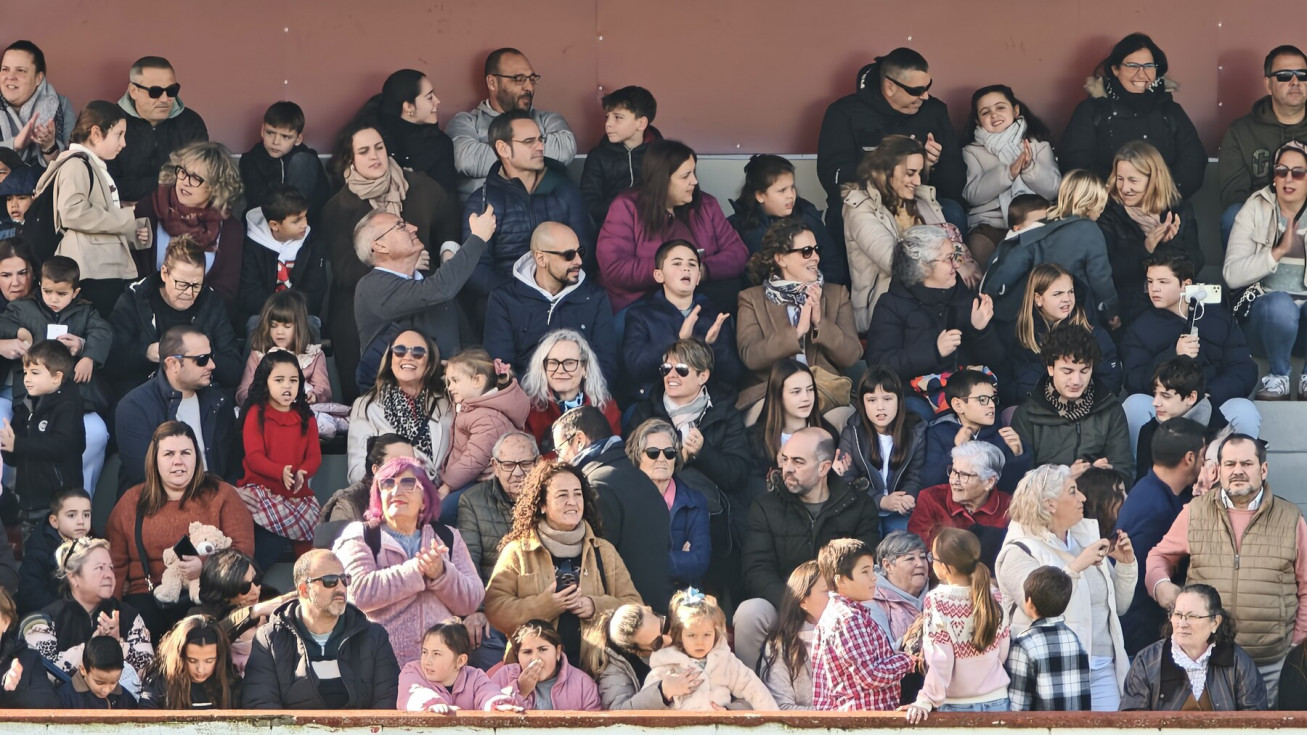 Miradas al cielo, aplausos y gritos se mezclaban en ese momento clave en el que se ha visto bajar a Melchor, Gaspar y Baltasar, ya que el Cartero Real y la Estrella de la Ilusión ya esperaban en el césped del estadio.
