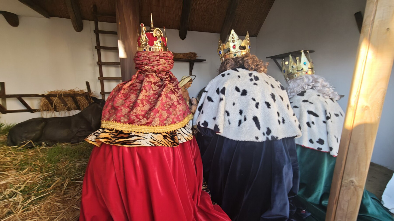 La tarde comenzaba este año con la adoración al Niño Jesús del portal de belén de la plaza Bartolomé Pérez que este año, se retrasaba ya que la llegada en helicóptero de los Reyes Magos obligaba a un recorrido a la inversa de otros años. Aunque la plaza no estaba tan llena como otros años para ese momento, Melchor, Gaspar y Baltasar realizaron su ofrenda de incienso, oro y mirra y posteriormente, recibieron a Carmen López Caballero, la alumna ganadora del concurso de Carta a los Reyes Magos, que este año, tenía el honor de leerla en público y recibir de Sus Majestades un regalo especial.