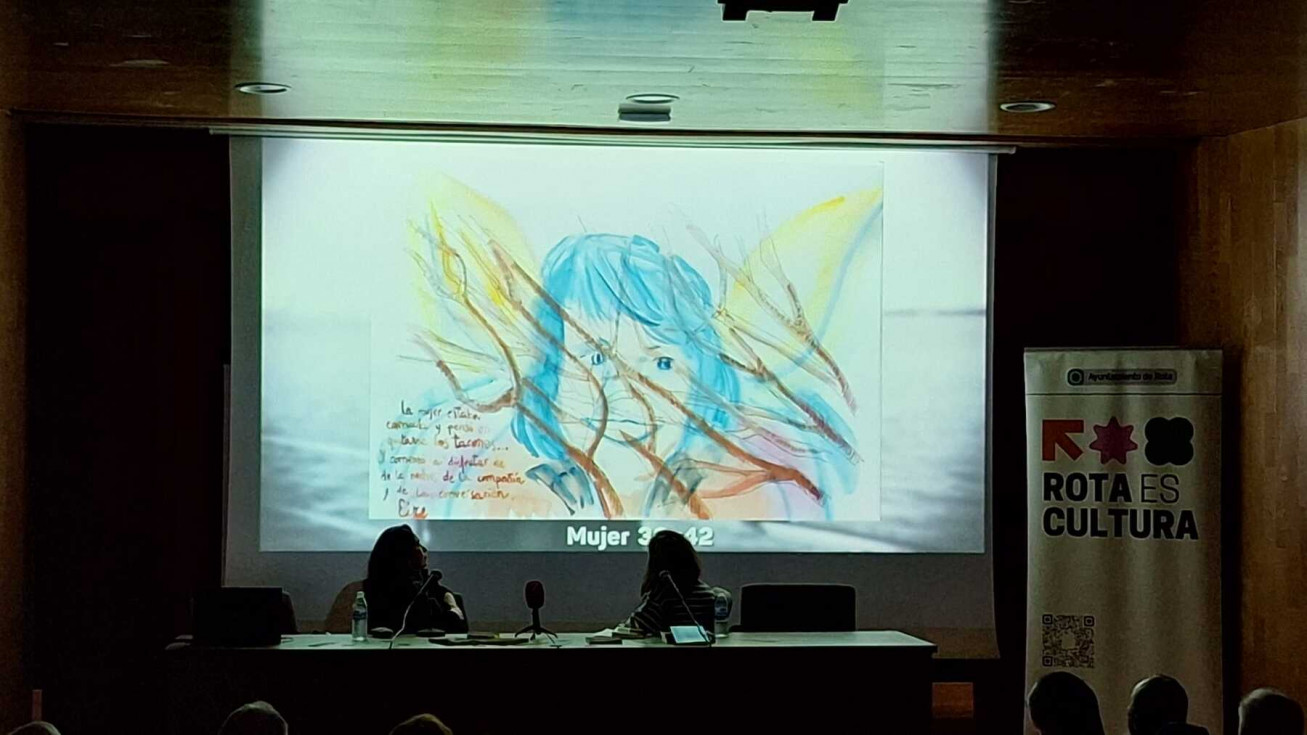Además de poder charlar con los asistentes, la autora proyectó un vídeo sobre el libro y sus ilustraciones, y miembros del Ateneo de Rota y la propia autora leyeron poemas del libro con el que deleitaron a los presentes.