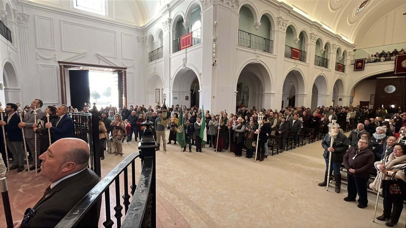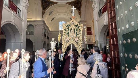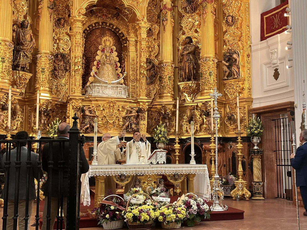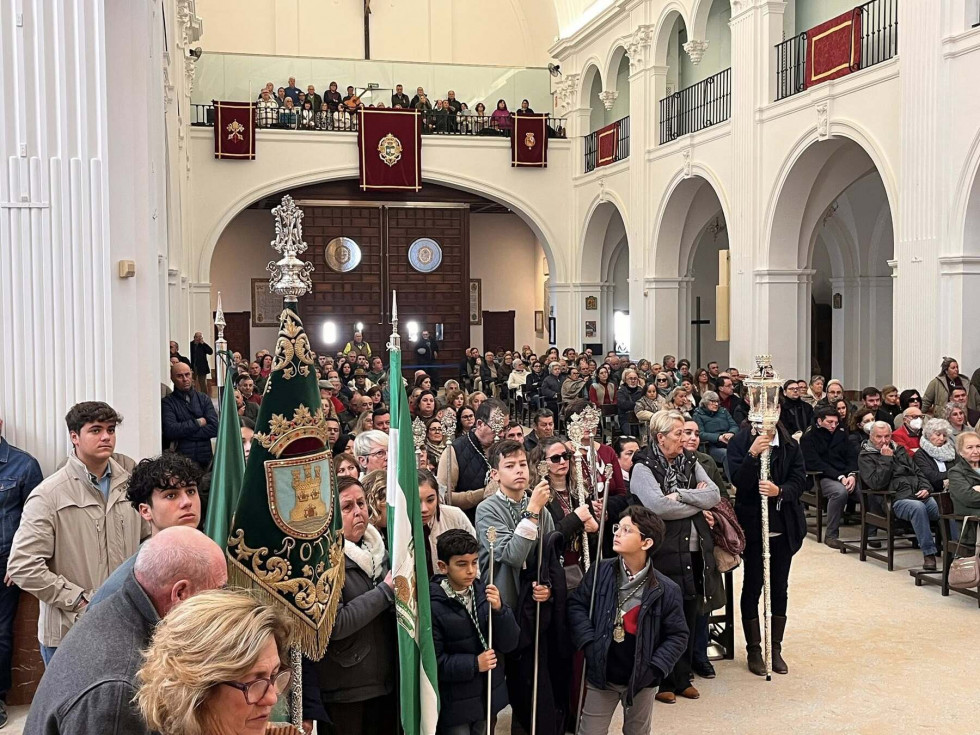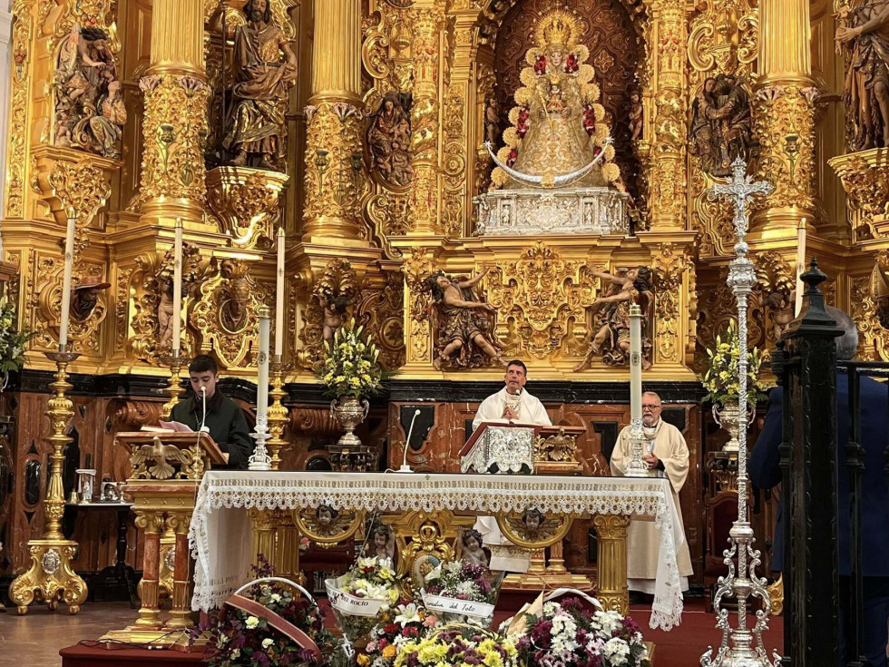 Unos 250 roteños acuden a la misa oficial de la Hermandad del Rocío ante la Blanca Paloma