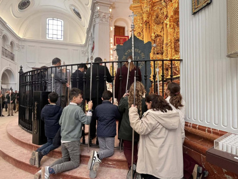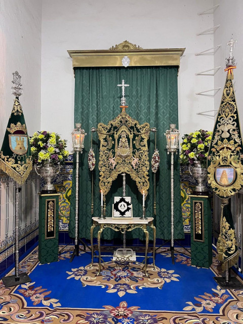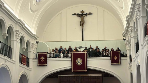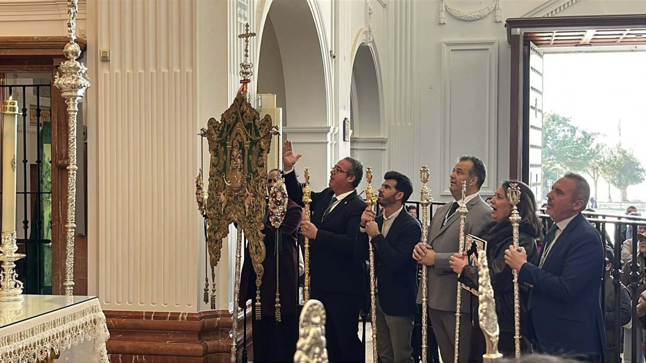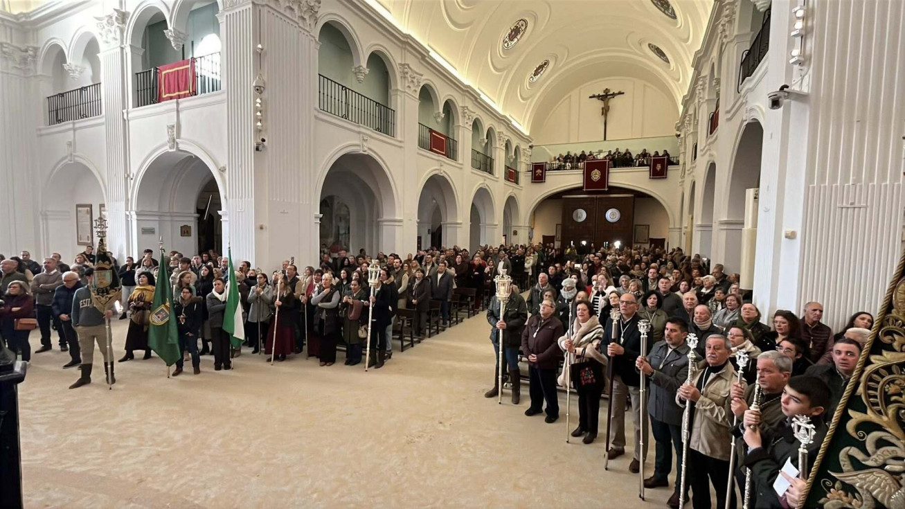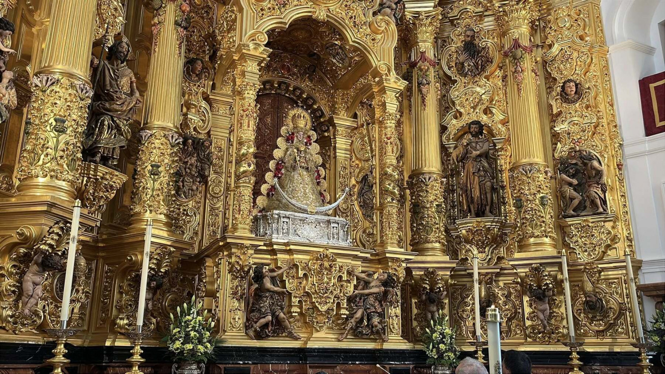 Unos 250 roteños acuden a la misa oficial de la Hermandad del Rocío ante la Blanca Paloma