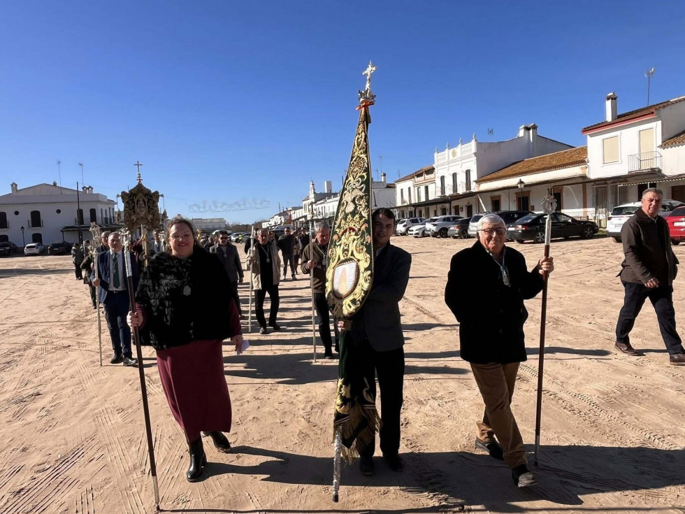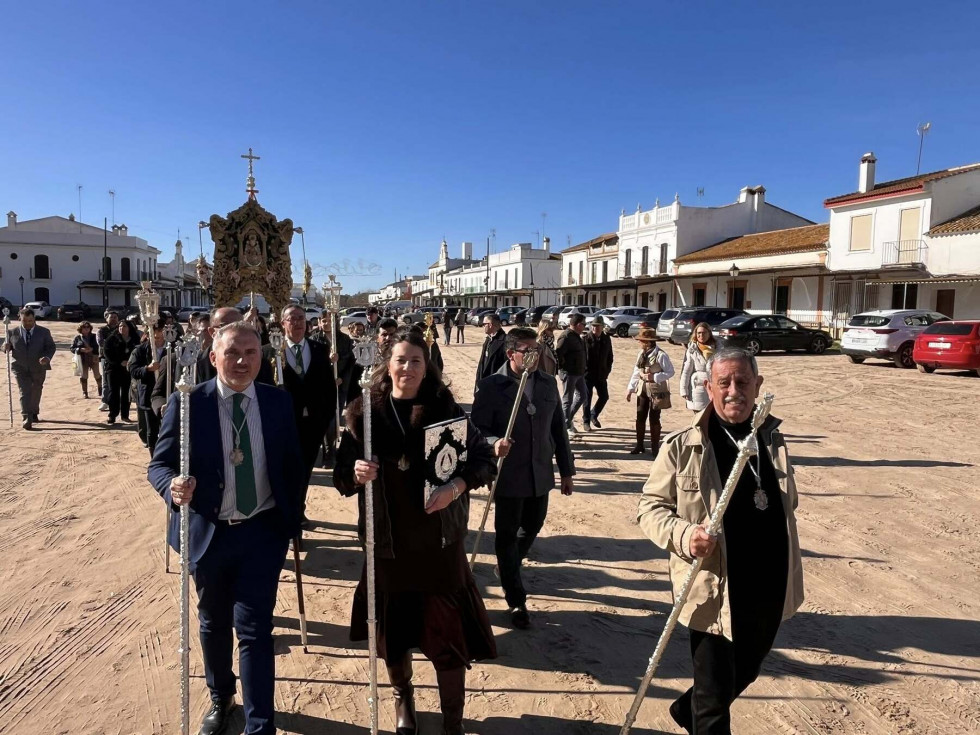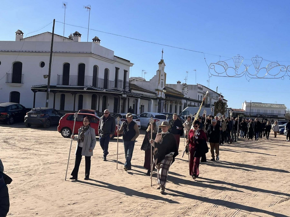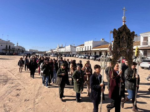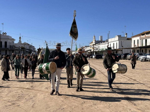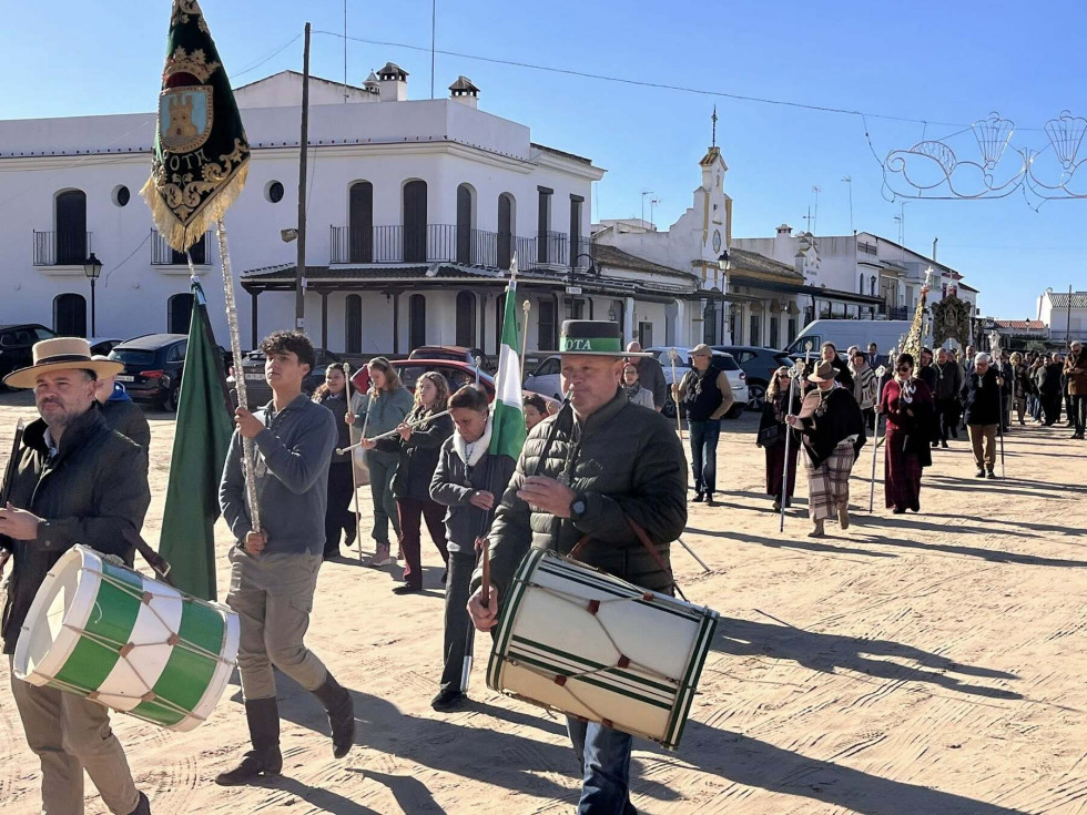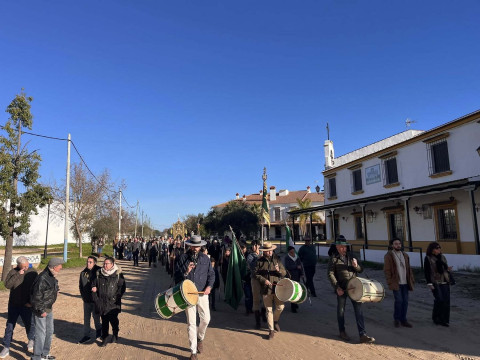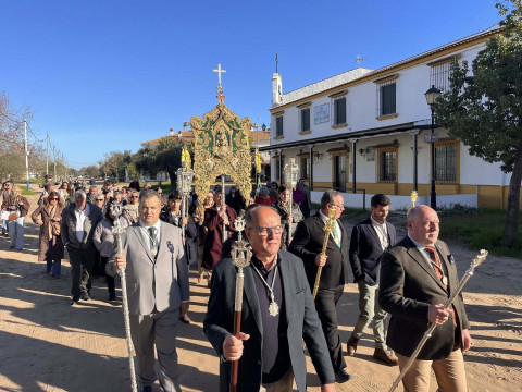 Unas 250 personas se han sumado a esta cita que se ha visto afectada por el último temporal ya que, si bien el tiempo aunque frío, no deparaba lluvias, desde el Parque Nacional de Doñana se aconsejó no llevar a cabo la peregrinación prevista ya que había zonas del camino que están intransitables debido a las lluvias de la última semana. Por este motivo, la Hermandad del Rocío decidió suspender la peregrinación andando. Pese a ello, muchos hermanos y devotos tomaron el autobús fletado para llegar a El Rocío y poder estar presente en esta cita anual.