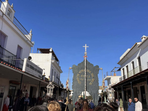 El sábado por la noche se llevó a cabo el rezo del Santo Rosario en la aldea con la Hermandad Matriz de Almonte y las hermandades allí presentes que también se habían trasladado para sus misas oficiales. La de Rota ha sido este domingo a las 11.00 horas y ha estado oficiada por el cura párroco Pedro Javier Carrasco, director espiritual de la hermandad, contando con la capilla musical del coro "Entre amigos".