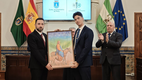 Por otro lado, el alcalde ha querido destacar la apuesta del Consejo y de la delegación de Cultura de seguir invitando a artistas roteños para que sean los artífices de los carteles de Semana Santa felicitando a Lokati por arriesgar en su propuesta eligiendo La Borriquita, que es el comienzo de todo, como protagonista de una jornada llena de alegría, donde los pequeños tienen su espacio. Javier Ruiz se ha referido a las líneas puras de este cartel, sin exceso, en la línea del artista "y con personalidad" al que ha agradecido que pese a estar viviendo en Londres nunca pierda el vínculo con su pueblo.