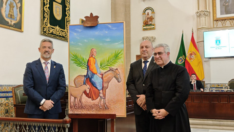 Por su parte, el presidente del Consejo Local de Hermandades y Cofradías, José Manuel Sánchez Peña, se ha referido al momento dulce que abre la Semana Santa y que refleja este cartel de Lokati del que ha destacado la vivacidad, pero también la simpleza de sus trazos reflejando en ellos la humildad de Jesús sobre una burra pese a ser rey de reyes, caminando junto a un burro pequeño que interpreta como la representación de la necesaria juventud.