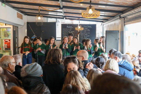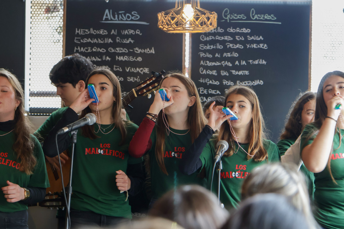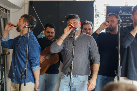 Para que los carnavaleros se fueran hoy con su buena dosis de Carnaval, todos los presentes han podido disfrutar de la actuación de las dos chirigotas que este año participan en el Concurso Oficial de Agrupaciones de Carnaval (COAC) en el Gran Teatro Falla, en la categoría infantil y en adultos. Los primeros han sido los pequeños "Los mal-élficos" que han cantado algunas de las letras que ya se han podido escuchar en su debut en el teatro gaditano dentro de la competición, y los segundos, para cerrar este acto, la chirigota de Antoñito Molina, que este año se presentan con el tipo de "Los muerting planner. Una chirigota pa to tus muertos" que, dado que están en el concurso, solo ha cantado algunas de las letras ya escuchadas el día de su presentación en el Falla.