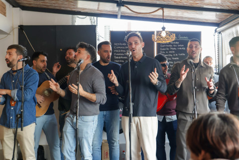 En la mañana de este domingo, los roteños han tenido la oportunidad de escuchar coplas de Carnaval en el bar La Moderna, mientras en el Castillo de Luna, a la misma hora, lo hacían las marchas procesionales que han acompañado a la presentación del cartel de Semana Santa.