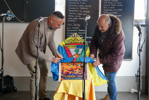 El autor ha dado protagonismo a la plaza de La Cantera, donde históricamente se celebra esta cita, y ha querido reflejar en ella que aunque ahora adopta el nombre de Camaleoná, deja claro que es la antigua Erizá y por eso, aparece en primer plano un erizo recordando este producto del mar, rodeado de un antifaz y pito de Carnaval. El color alegre del cartel invita a disfrutar de ese día. José Antonio Cruzado ha dado las gracias a la peña por la confianza y ha deseado un buen Carnaval a todos los presentes.