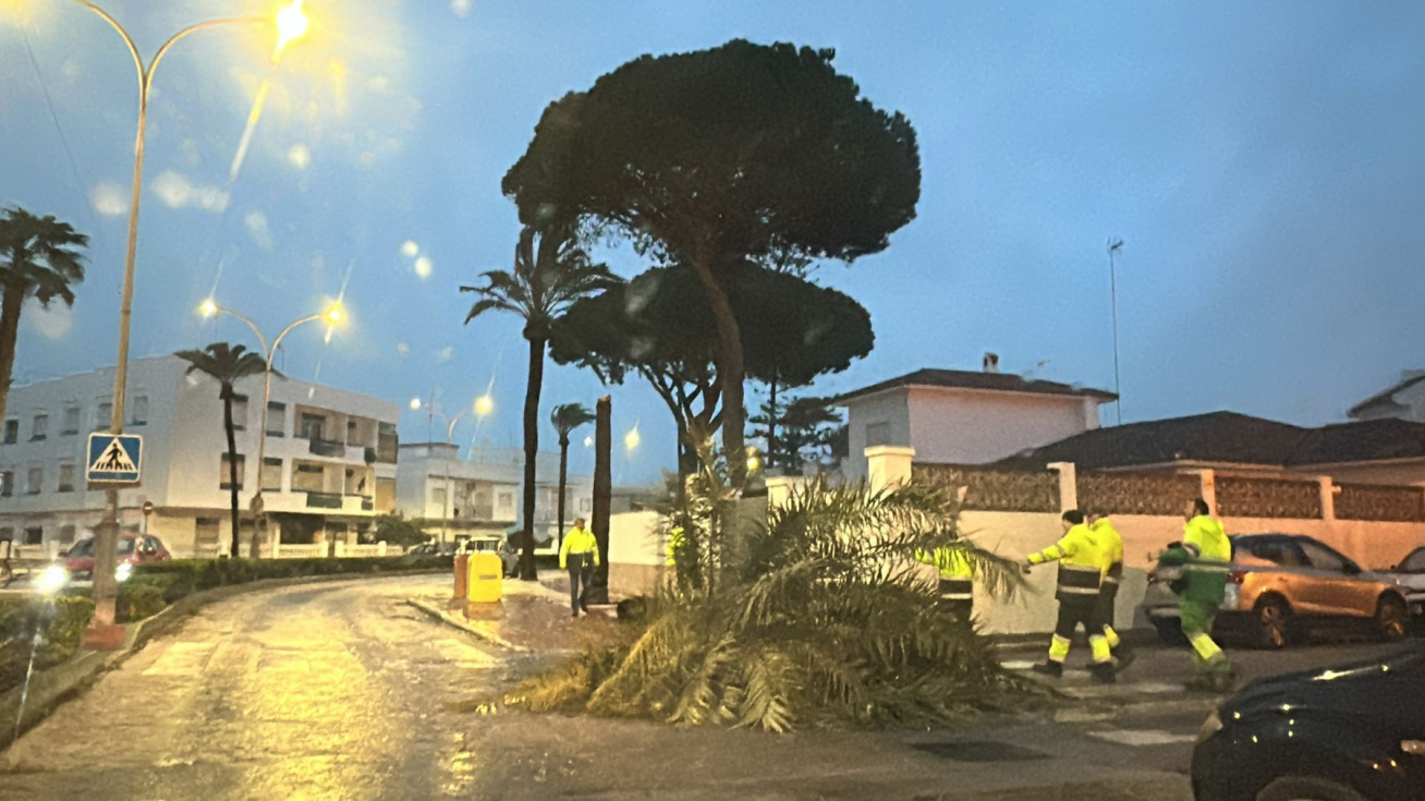 El personal de la delegación de Parques y Jardines ya está en la zona para retirar la palmera y dejar la vía pública libre.