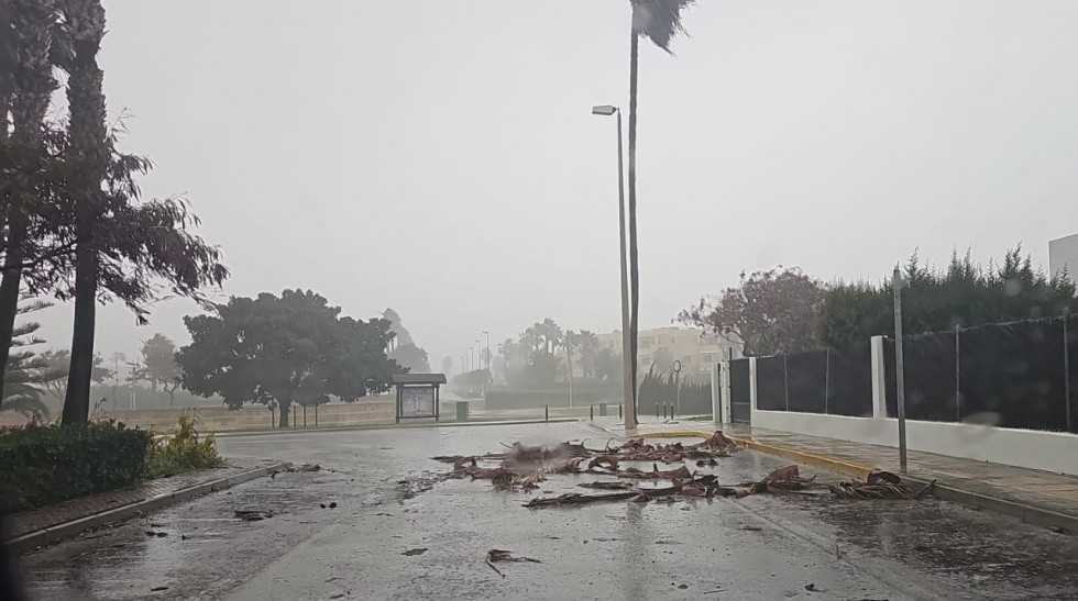 En concreto, se trata de una palmera de la avenida de la Marina, que se ha tronchado, sin causar daños materiales, y un tramo del vallado del Hotel Caribe que se ha visto igualmente afectado arrancado de cuajo.