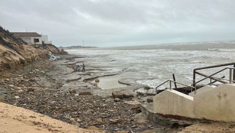 Los tres temporales que se han sucedido en este mes de enero -Ingrid, Josep y Kristin-, dejan una estampa crítica e impactante que preocupa a los vecinos porque al no haber ningún sistema de retención, tipo escollera, temen que los daños vayan a más y el sistema dunar que se va viendo afectado sea irrecuperable si no se pone remedio.