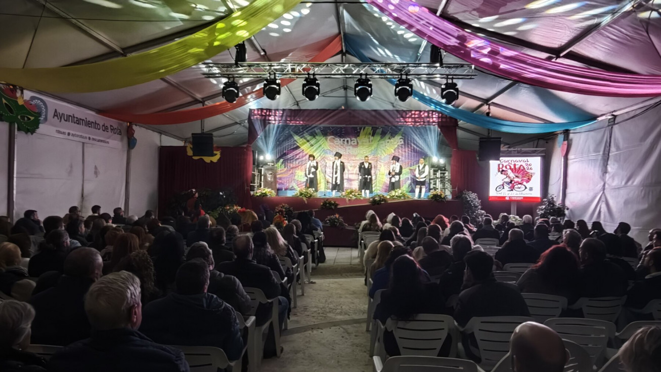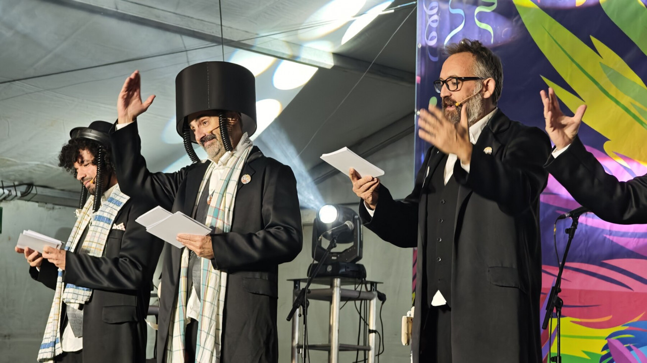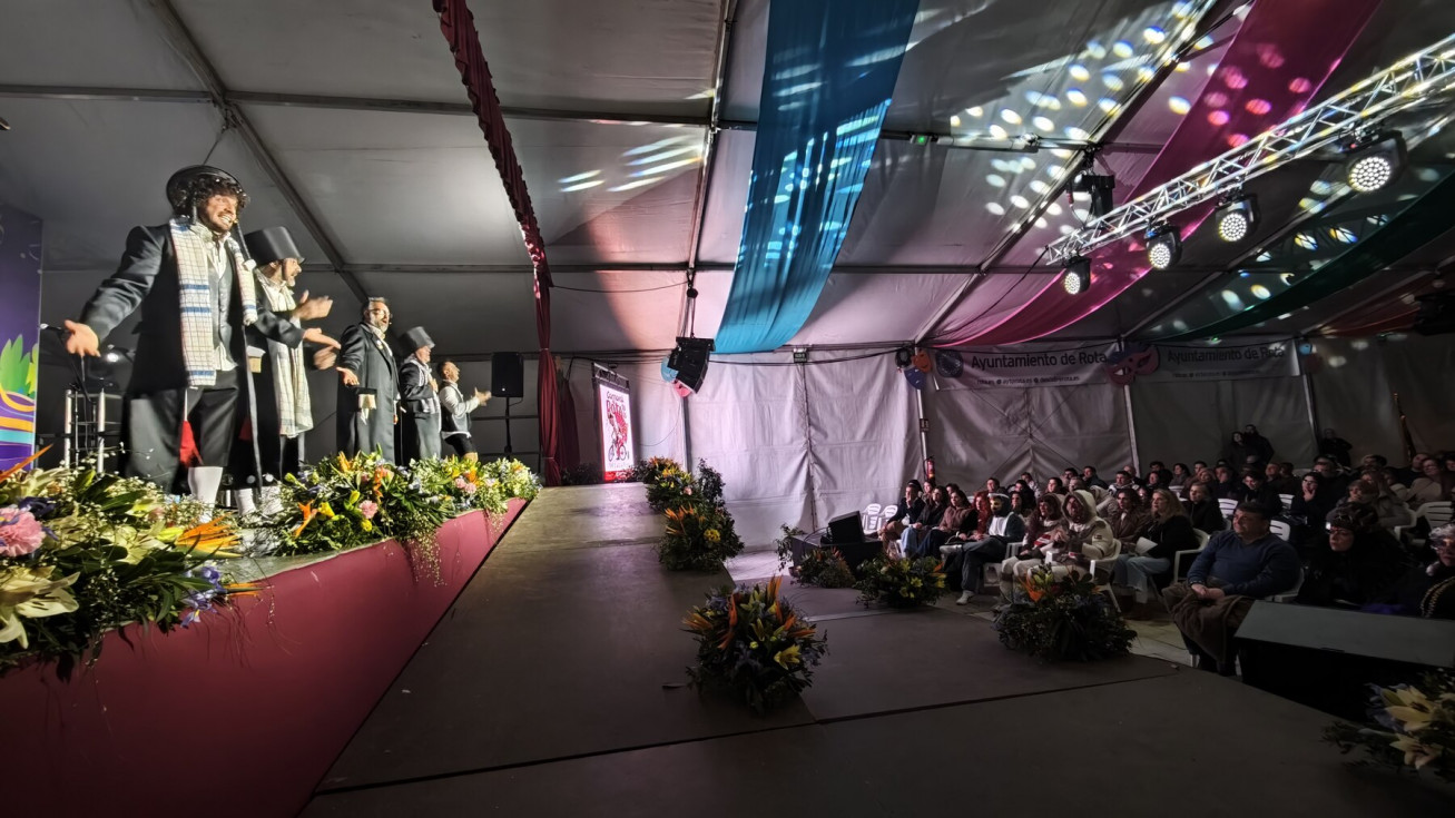 La carpa de la avenida San Juan de Puerto Rico se llenó de aficionados para ver en directo a los que este año se han alzado con el primer premio en la modalidad de cuartetos en el Concurso Oficial de Agrupaciones Carnavalescas (COAC) 2026, con su tipo "Que no vengan", aunque para subirse al escenario roteño eligieron recuperar el que ya lucieran en 2022, con aquellos judíos ultraortodoxos ('Los ultraortodoxos de los callejones Cardoso').