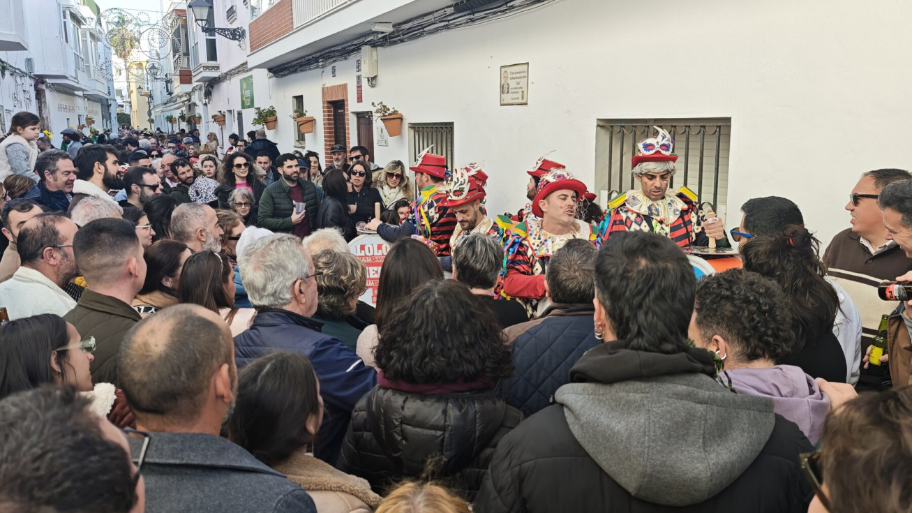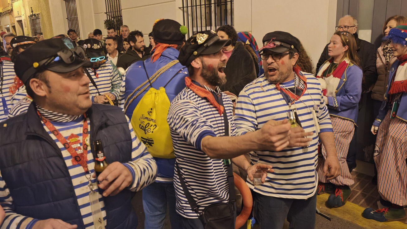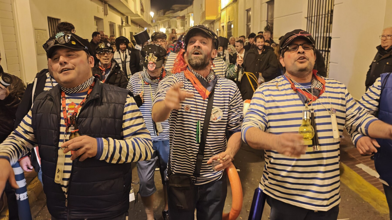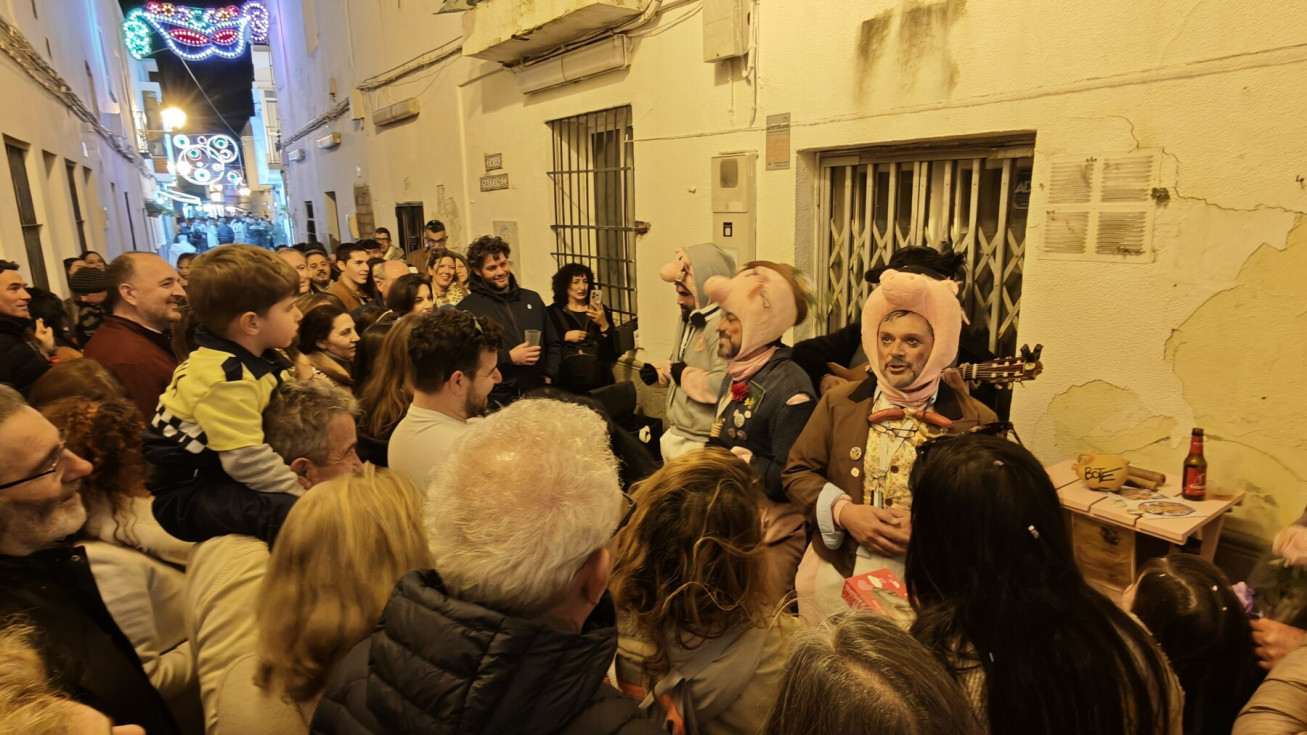 Como siempre, la calle Mina fue cogiendo cuerpo y las agrupaciones callejeras buscando su sitio para ofrecer el repertorio a estrenar este año para divertir y reír. Gracias a ellas, la plaza de San Roque, la Mina, la calle Prim, la Mina Chica o alrededores fueron puntos de encuentro para aquellos que disfrutan escuchando coplas, pasodobles y cuplés.