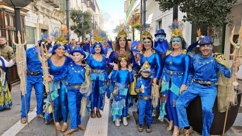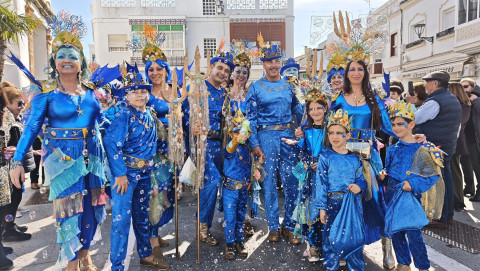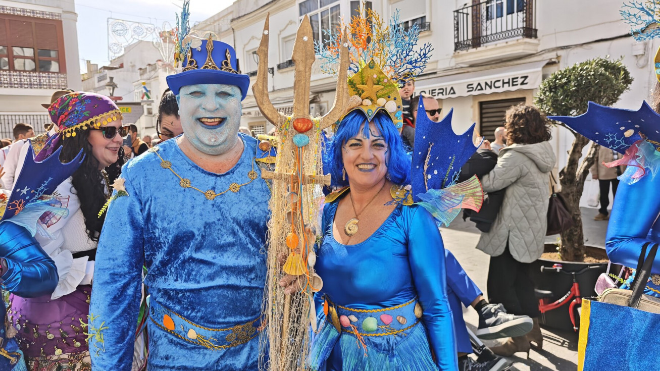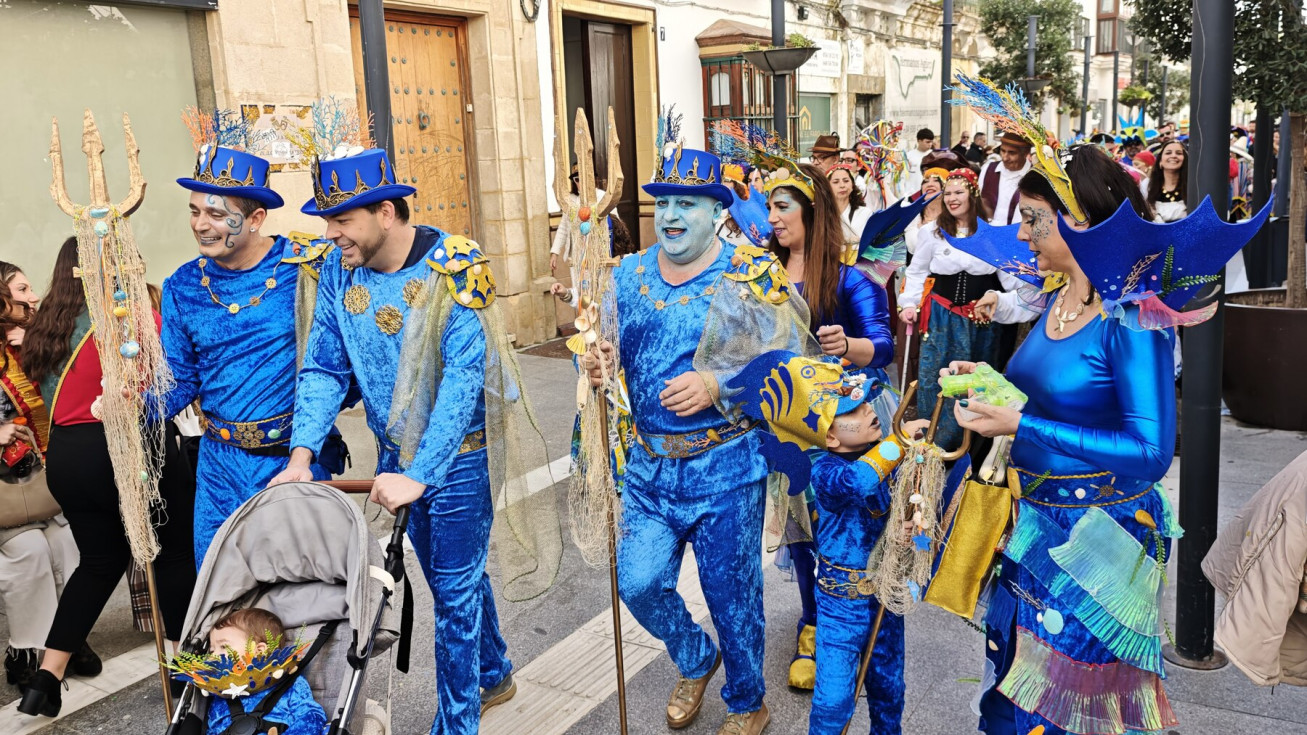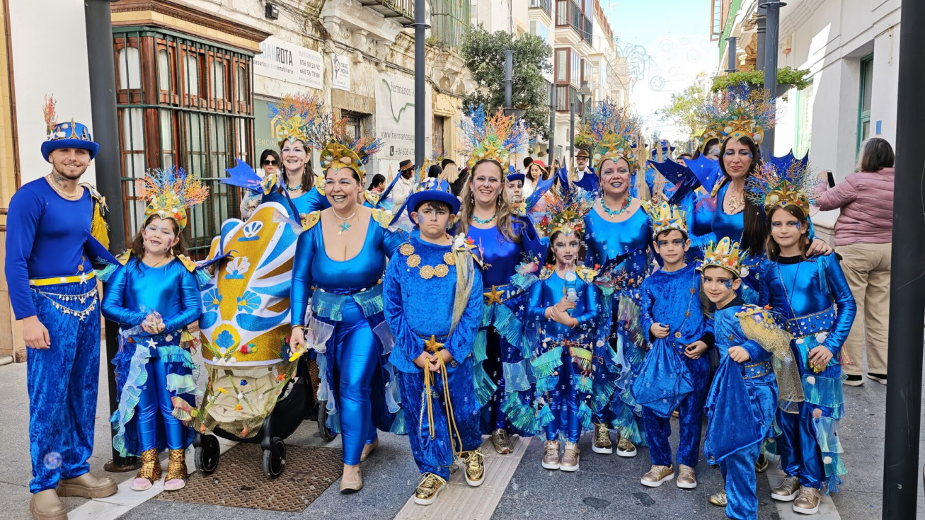 El pasacalles ha dejado volar serpentinas por el aire, ha llenado de coplas el ambiente y ha llegado a la carpa de Carnaval sobre la 1 del mediodía para dar paso al segundo acto oficial de la programación: presentación de ninfas y atlantes, elección de la Sirena y el Neptuno y pregón infantil, para terminar con la actuación de "Los mal-élficos".