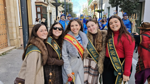 Entre la comitiva, que abría la batucada de Rota, se ha visto también a las 12 ninfas y 2 atlantes que este año representan a peñas y entidades en carnavales, vestidos con el típico traje, sumándose el Neptuno y la Sirena infantil del año pasado, que se despiden así de su reinado tras un año. También ha estado la delegada de Fiestas, Esther García, y algunos concejales luciendo disfraz.