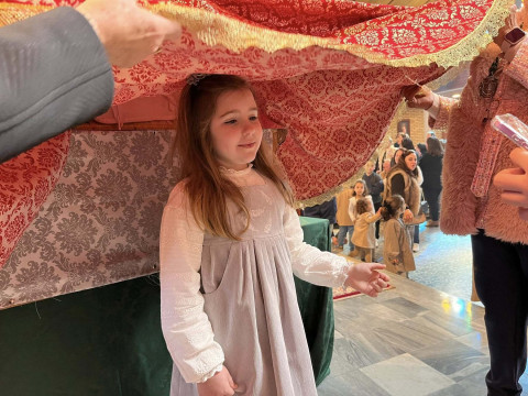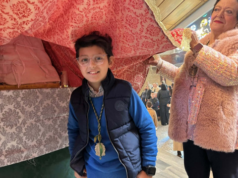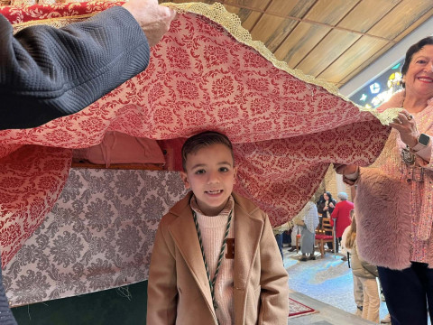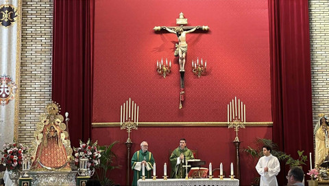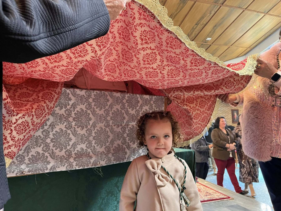 A las doce del mediodía tenía lugar la celebración de la Misa de la Candelaria, donde se ha presentado y bendecido a los niños de la hermandad ante la imagen de la Santísima Virgen del Rocio y se ha dado a conocer el nombre de la persona encargada de pronunciar el XLVI Pregón del Rocío 2026 de Rota.