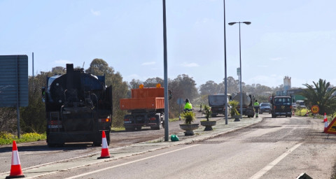 En la mañana de hoy, jueves, 19 de febrero, las máquinas están trabajando en el asfaltado de la carretera A-2075, en su tramo desde la entrada por la Base Naval de Rota a la rotonda "Villa de Rota", mejorando así un firme que estaba en una situación muy peligrosa para los conductores y que ponía en riesgo la seguridad vial.