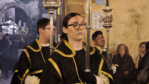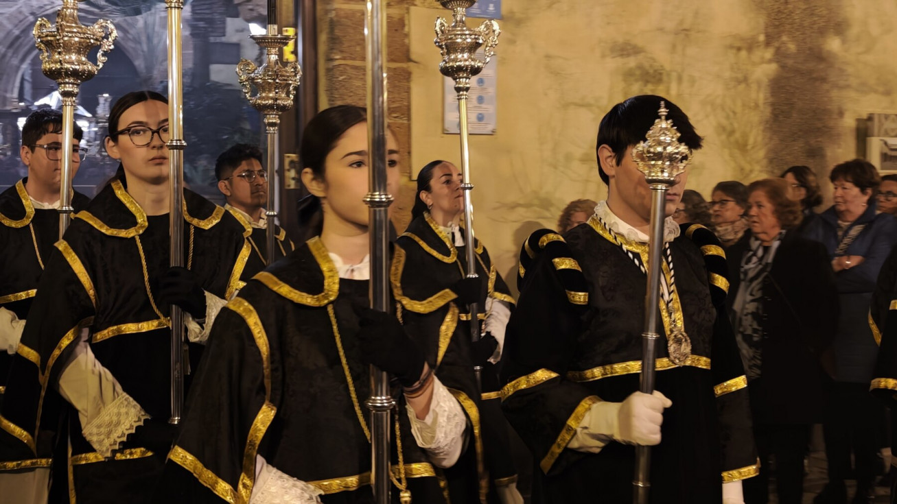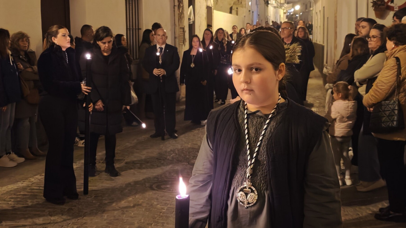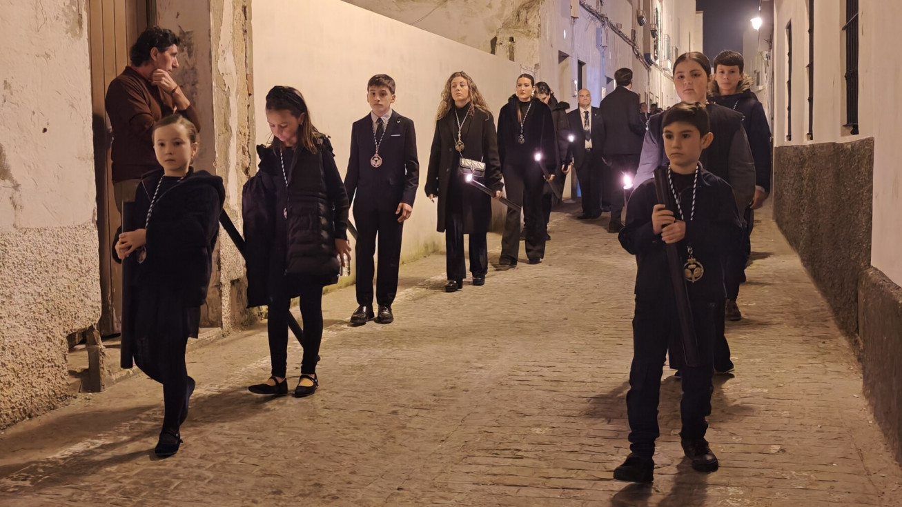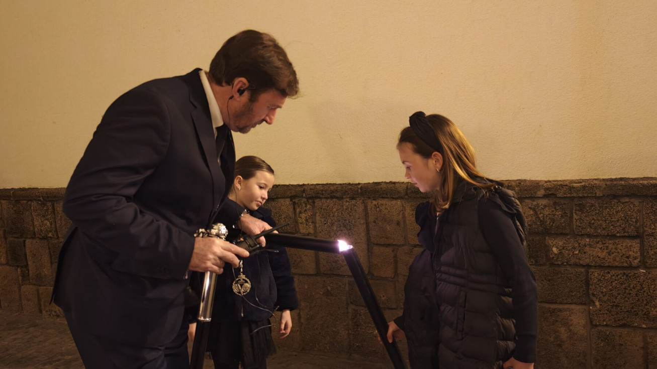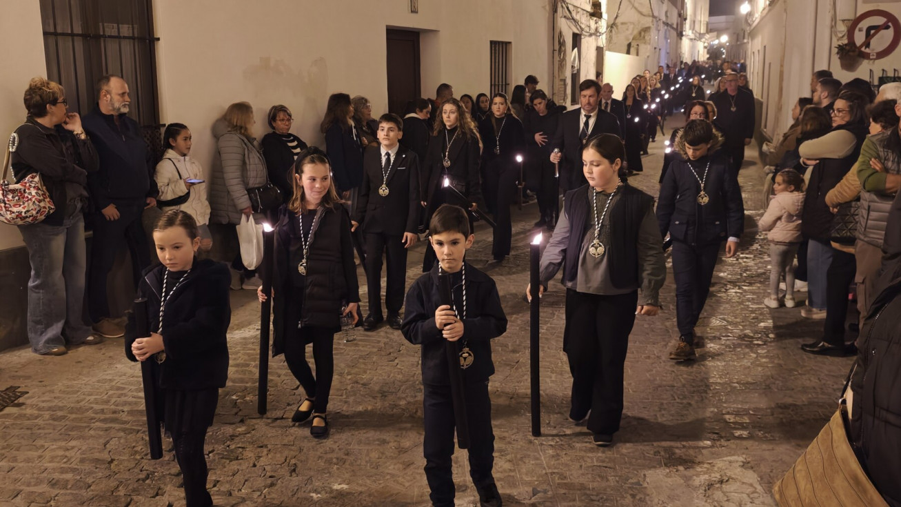 En la amplia representación de hermandades ha destacado el grupo de pequeños cofrades en las primeras filas portando cirios, dando luz a una noche en la que las temperaturas han sido muy suaves.