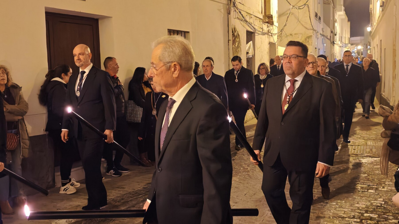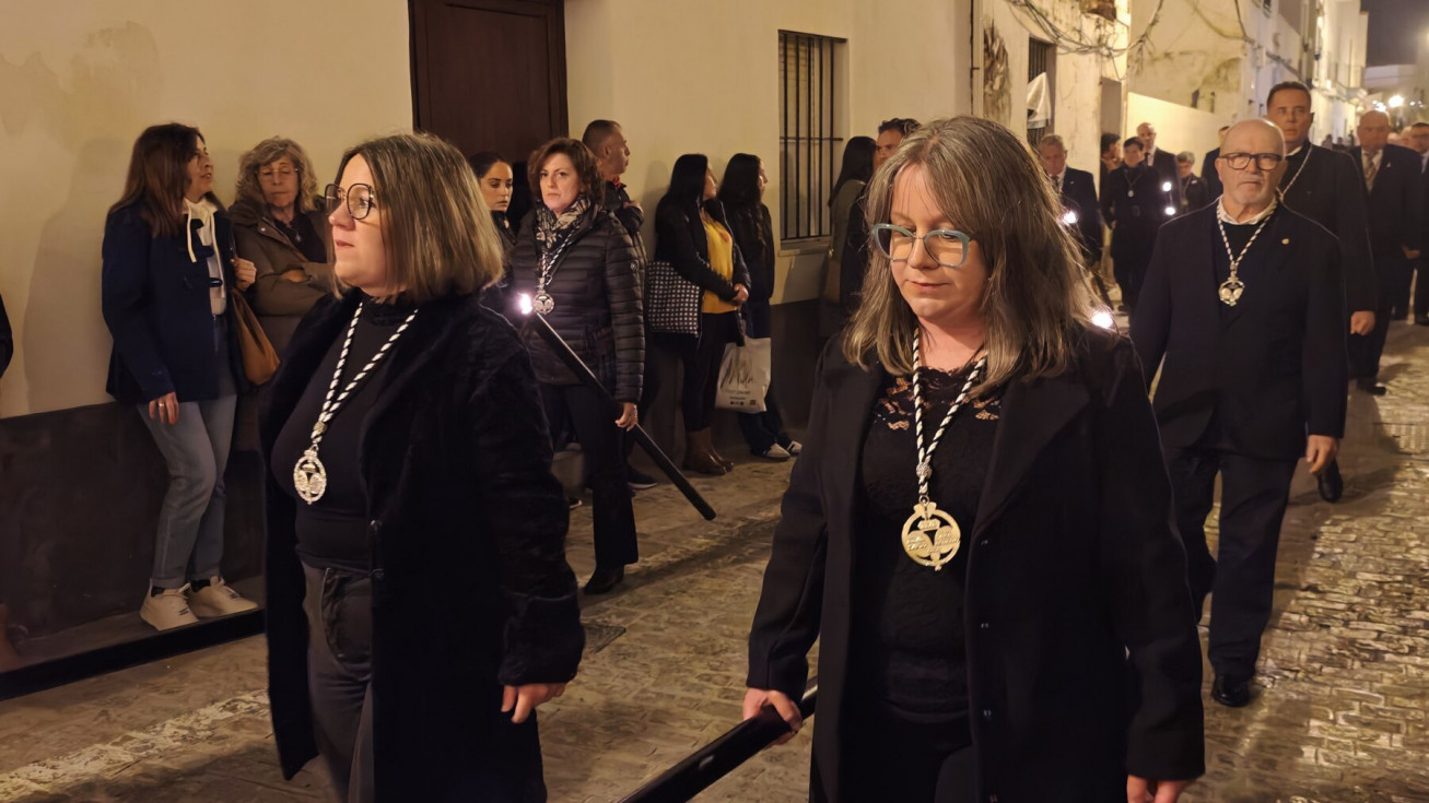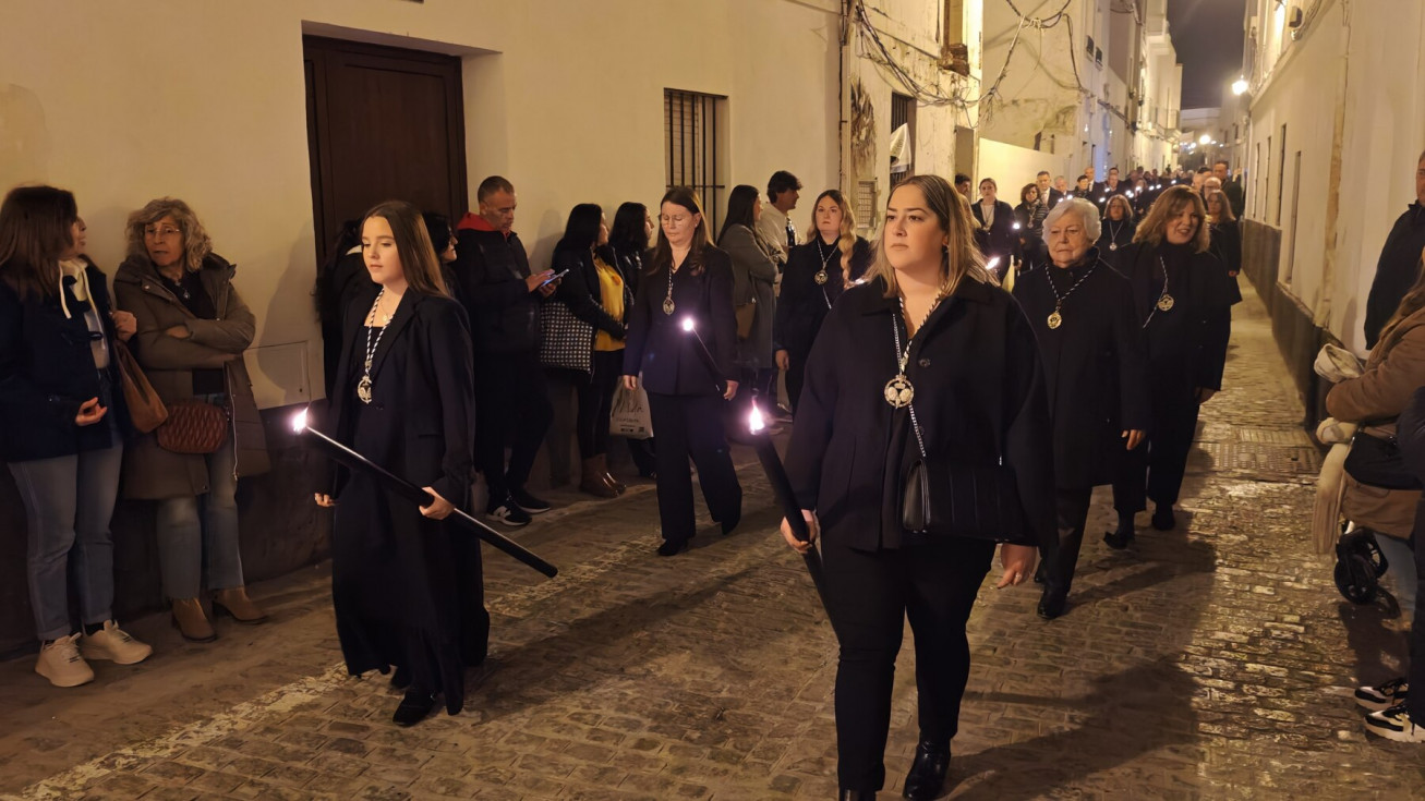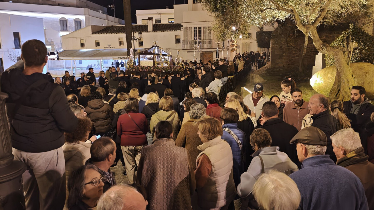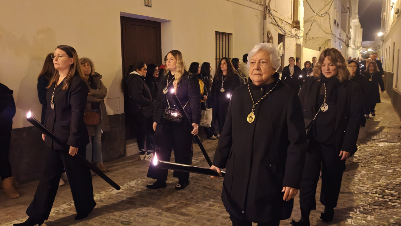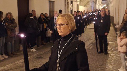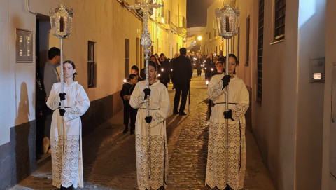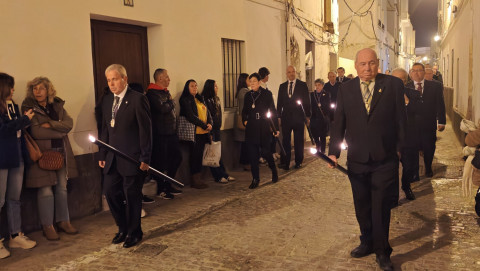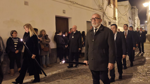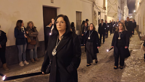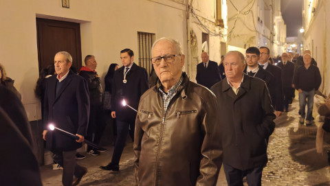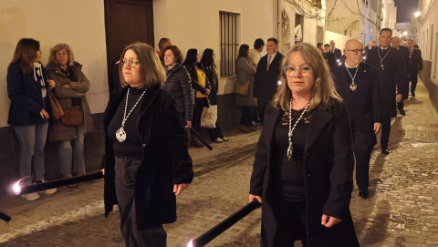 Mujeres y hombres han ido turnándose para cargar la imagen que ha presidido con sobriedad este viacrucis de un lunes de Cuaresma en el que también muchos roteños han querido seguirlo en este rezo, detrás de las andas. A su paso, por las calles del centro, en algunas más que en otras, esperaban otros tantos ciudadanos para verlo y acompañar a Cristo Yacente en este viacrucis de una Cuaresma que comenzó el pasado 18 de febrero con el Miércoles de Ceniza.