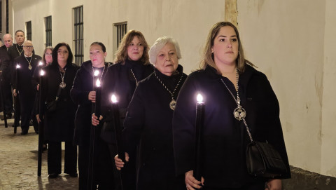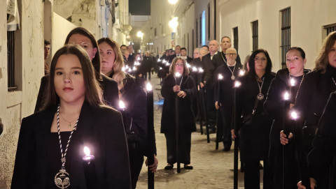 El párroco de la O, Santiago Gassín, el párroco de la iglesia del Carmen, Pedro Javier Carrasco, y los diáconos Diego Vidal y José Manuel Peinado, han acompañado en el rezo de las 14 estaciones que han recordado los momentos más destacados de sufrimientos vividos por Jesús desde que fue hecho prisionero hasta su muerte en la cruz y posterior resurrección. La capilla musical ha corrido de la mano de la agrupación "Las niñas música" que ha acompañado en el recorrido con acordes propios de un ambiente de recogimiento.