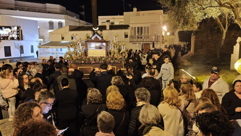Los ciudadanos que se han acercado han podido ver una imagen poco usual por las calles de Rota en Semana Santa, ya que a diferencia de cómo luce el Cristo Yacente cada Sábado Santo por Semana Santa, sobre su lecho mortuorio al descubierto, se ha optado para este viacrucis por la urna de cristal con bordes de madera que habitualmente está en su capilla de la iglesia de la O, y que hace más de 50 años que no se usaba para una salida a la calle.