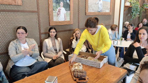 Para este mes de marzo, los productos seleccionados son la carmela con crema kinder y la cuña de chocolate blanco y crema pastelera. Dos dulces exquisitos que muchos de los presentes hoy en la presentación de "12 panes, 12 causas", han podido ya degustar por cortesía de San Antonio que ha reunido a representantes de asociaciones locales de todo tipo y centros educativos públicos en esta cita.