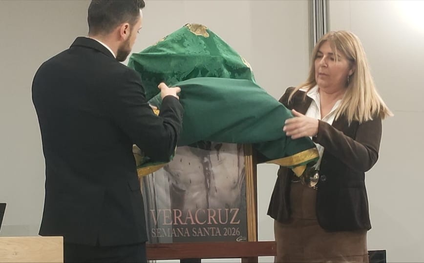 Eran el delegado de Cultura y Charo Grande, de la familia Grande, los que descubrían el cartel anunciador de la Semana Santa que edita la hermandad veracrucista, que ha vuelto a dar las gracias al patrocinador.