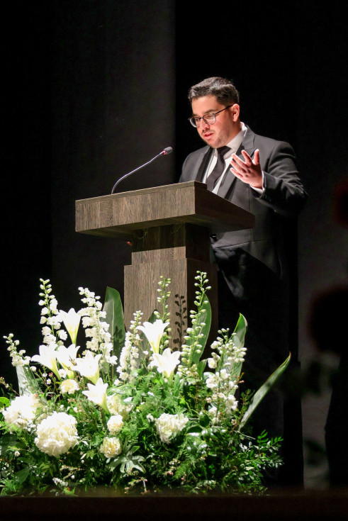 Su amigo Abel Beltrán, con quien comparte muchas de las horas de vida diaria en la parroquia, fue el encargado de presentarlo como una persona que desde pequeño ha vivido la fe buscando su propio camino, encendiendo los cirios de hermanos, de acólito, nazareno y costalero de su hermandad del Jueves Santo. Luis Miguel cultiva su fe en la intimidad de la parroquia, decía su presentador, recordando que desde su labor callada en el día a día de la iglesia, o sirviendo en la eucaristía, ha forjado su forma de creer y su propia vida, porque como luego reconocería, ser creyente es parte de su experiencia vital. Como amigo, sabía que la de ayer era una noche importante para el pregonero, el sueño de un niño que se cumple y que le permitió compartir con serenidad sus sentimientos de fe.