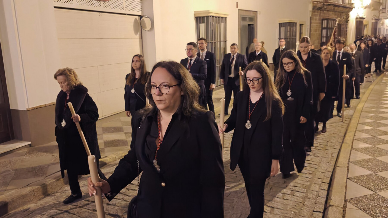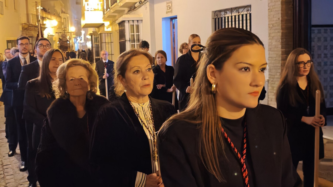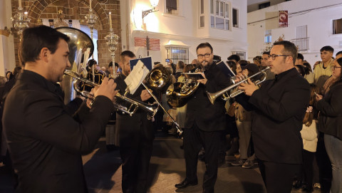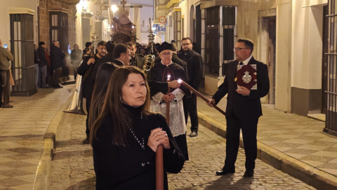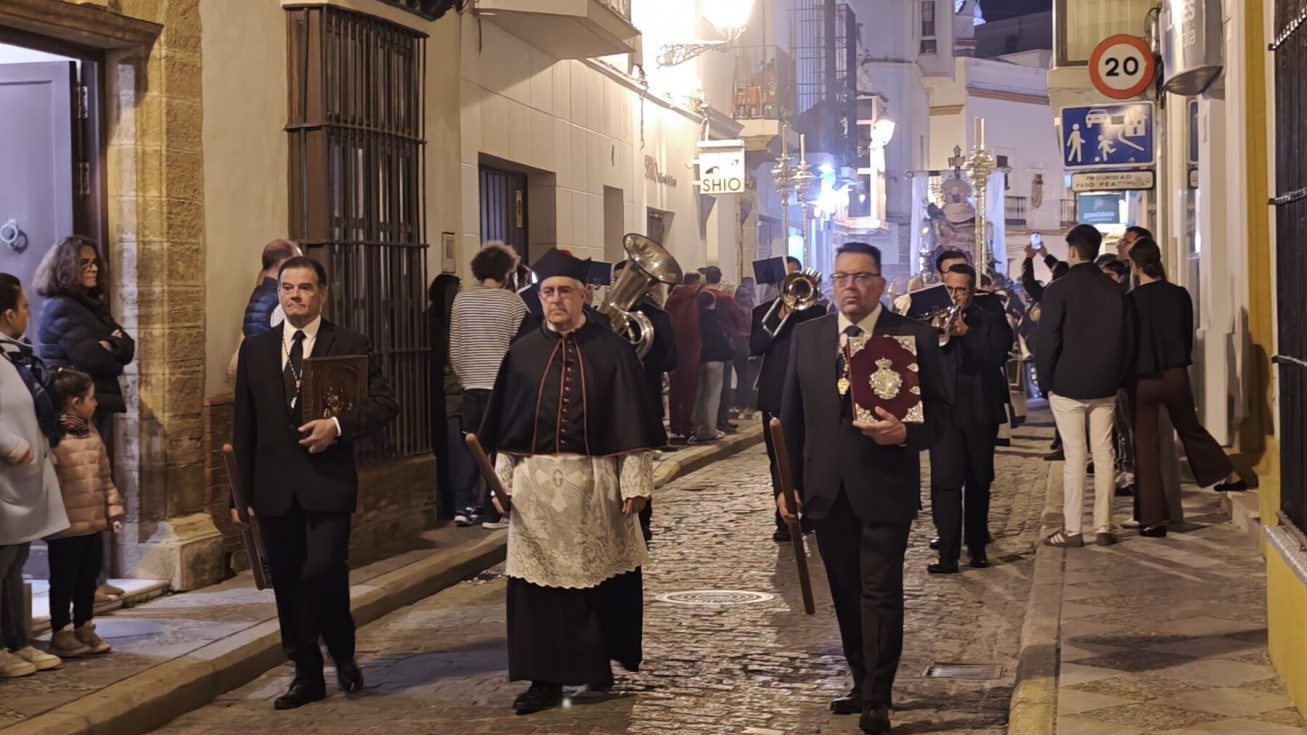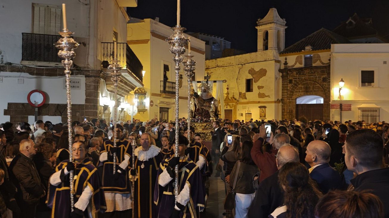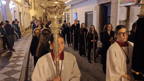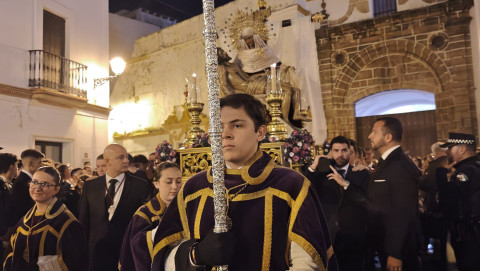 Aunque este ha sido un traslado sencillo, con algunos hermanos portando cirios, el libro de reglas o el Libro de Difuntos, el cuerpo de acólitos y un quinteto de metales acompañando musicalmente en el recorrido, muchos han sido los roteños que han querido acompañar a la virgen del Jueves Santo por las calles del casco histórico.