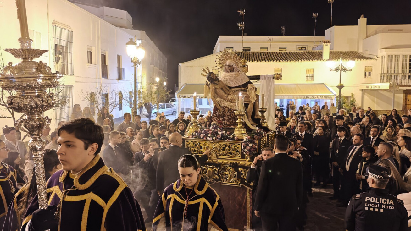Los roteños acompañan a la virgen de los Dolores en su traslado a la parroquia de la O