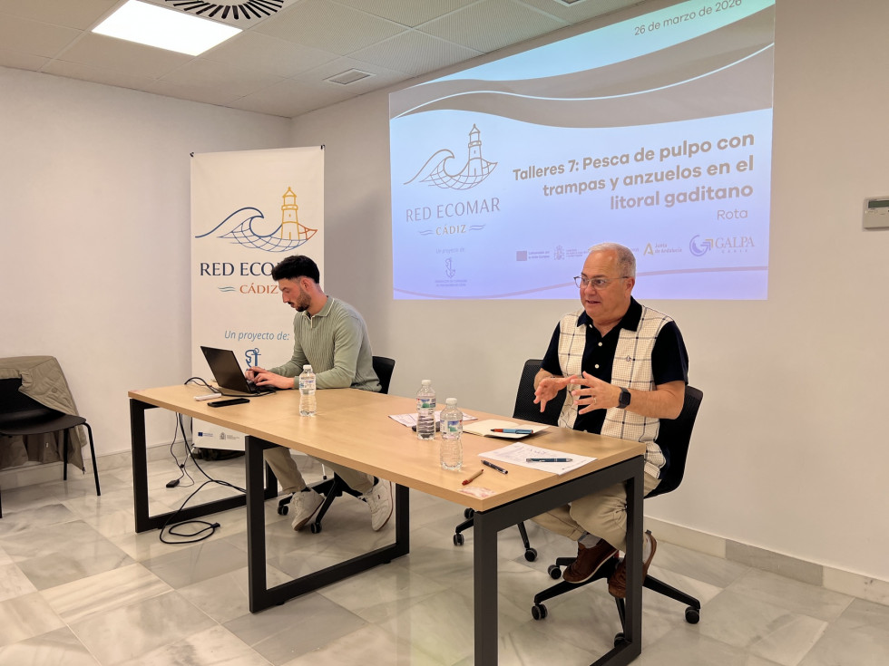Hoy se ha celebrado en Rota un taller centrado en la pesca de pulpo con trampas y anzuelos, una de las modalidades tradicionales más relevantes del litoral gaditano.