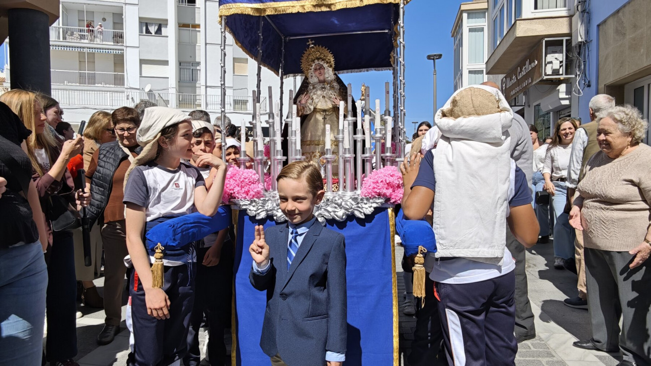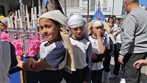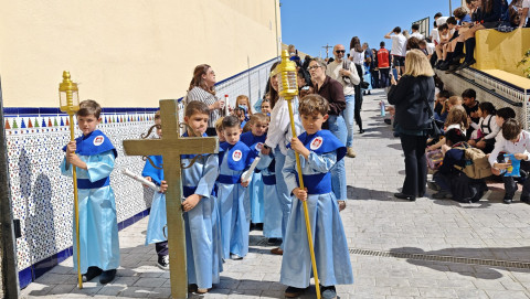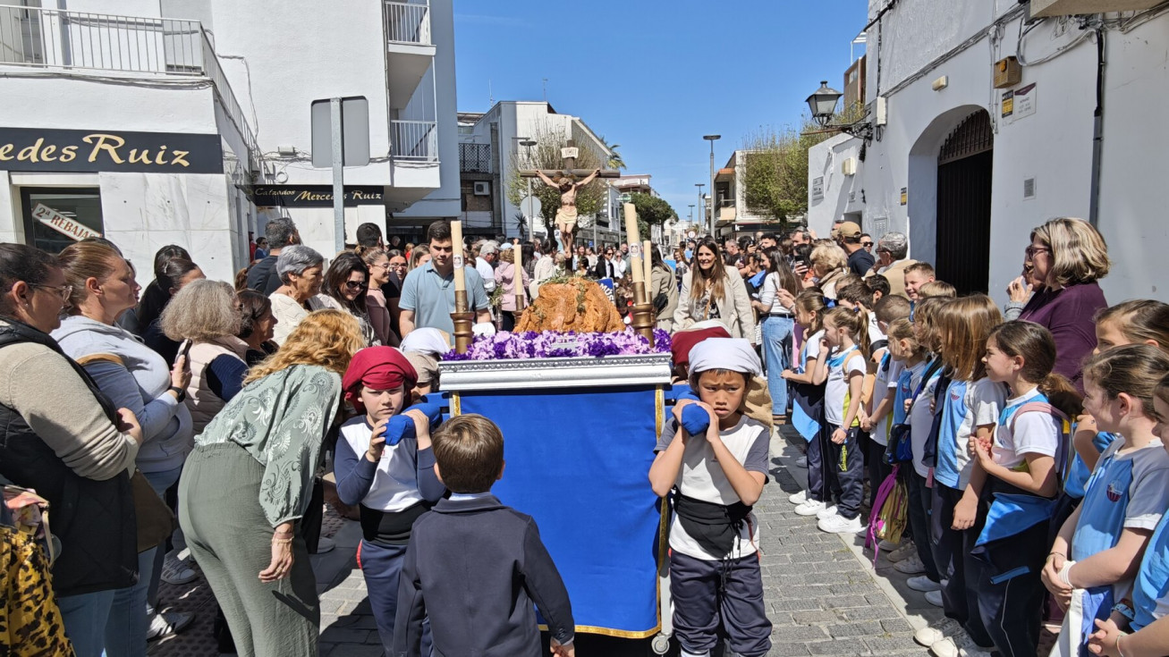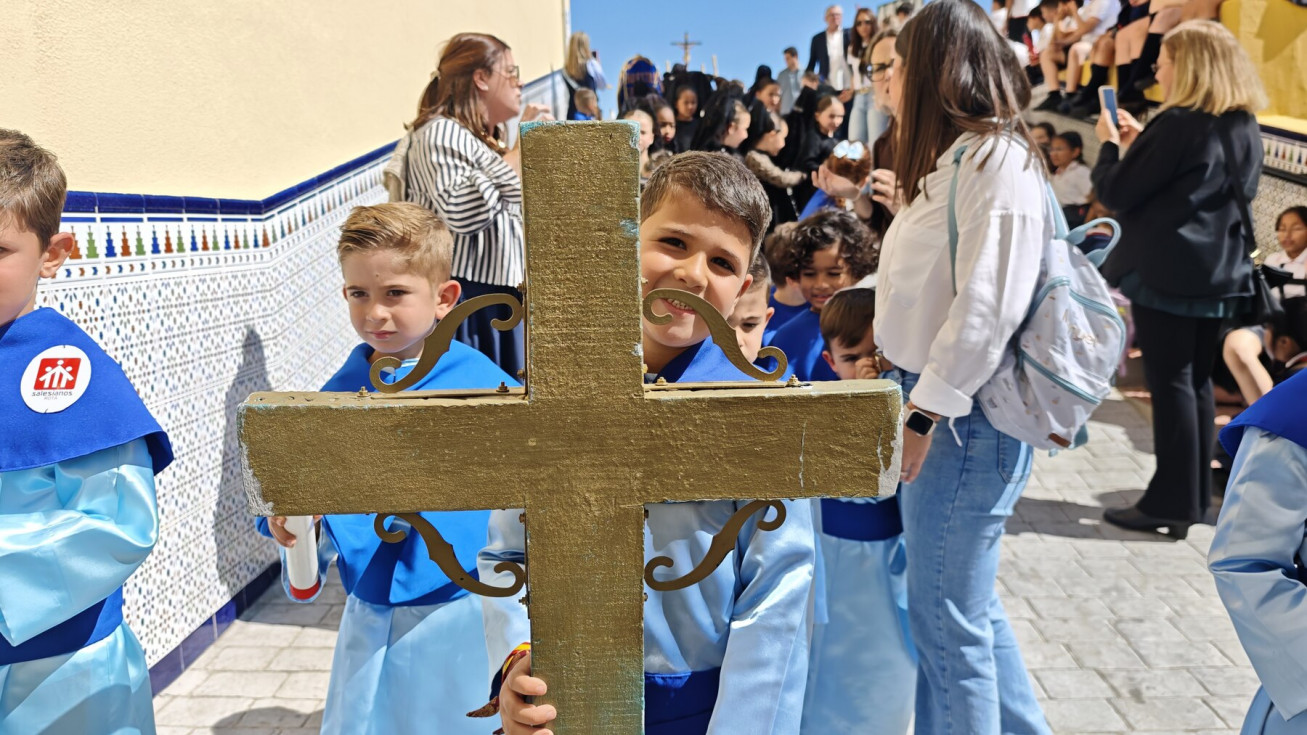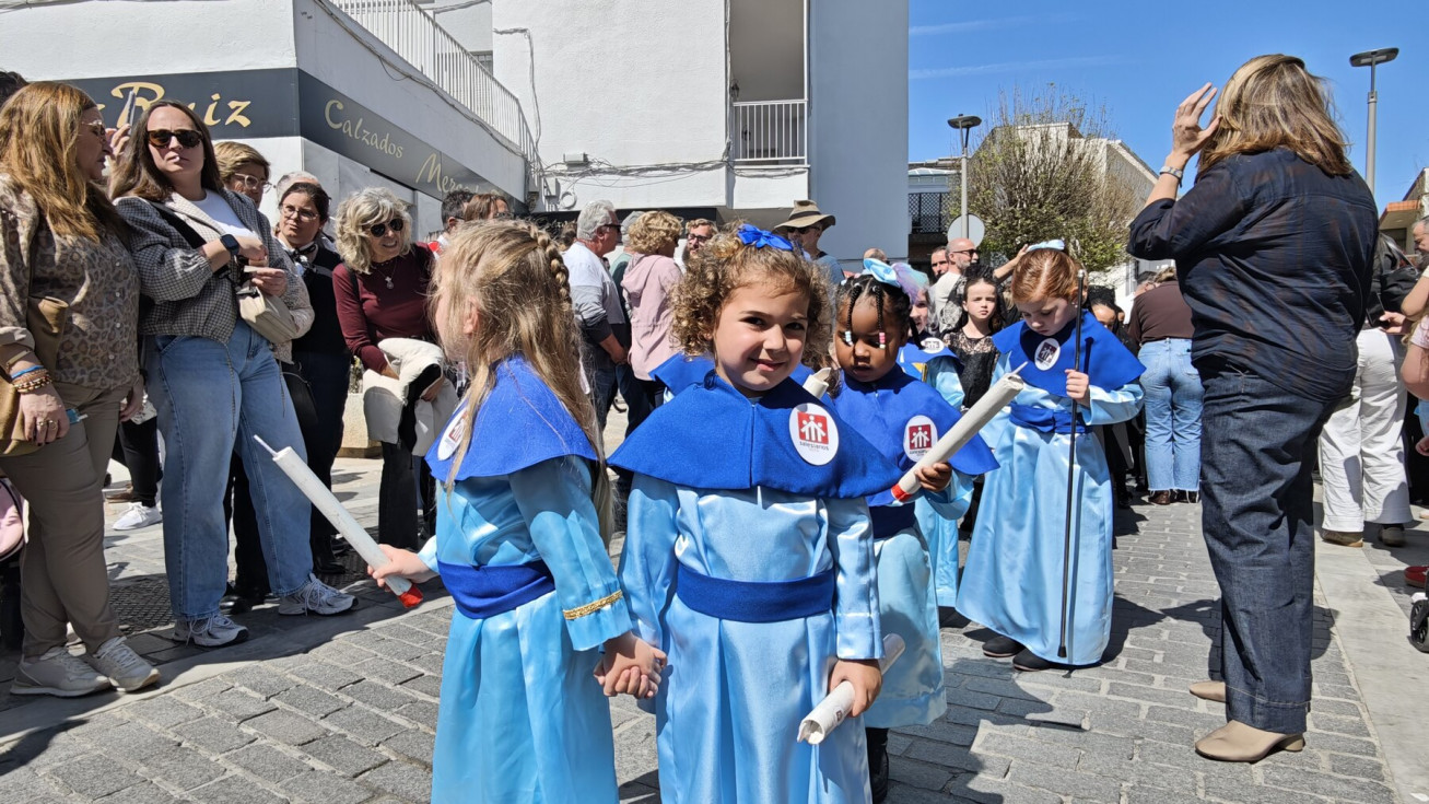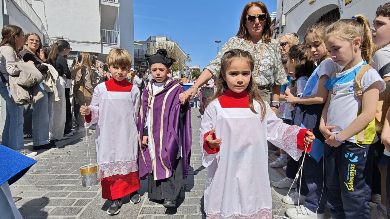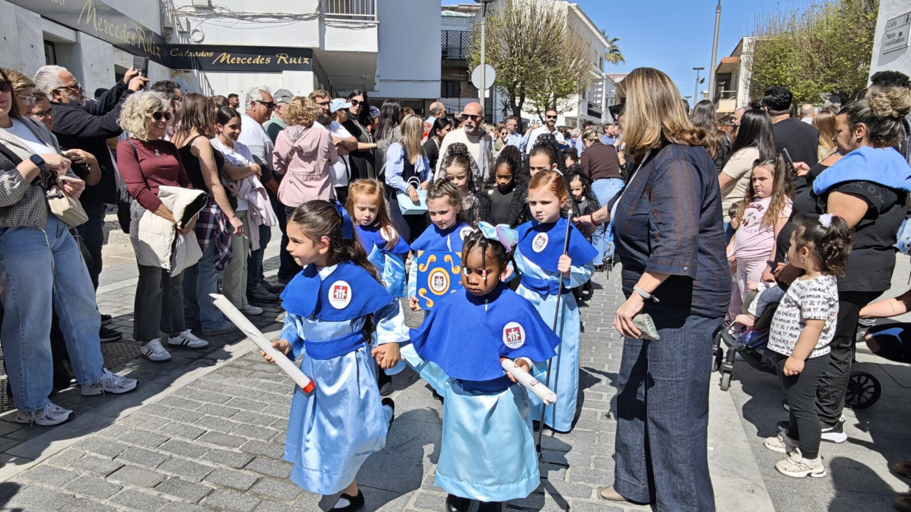 Sin duda, el colegio religioso aprovecha para que los escolares sean parte de una salida procesional al estilo de las muchas que verán en los próximos días y con ello, inculcarles la tradición y el mensaje, pero además, sirve de revulsivo para la localidad porque son muchas familias y vecinos los que acudan para verlos desfilar.