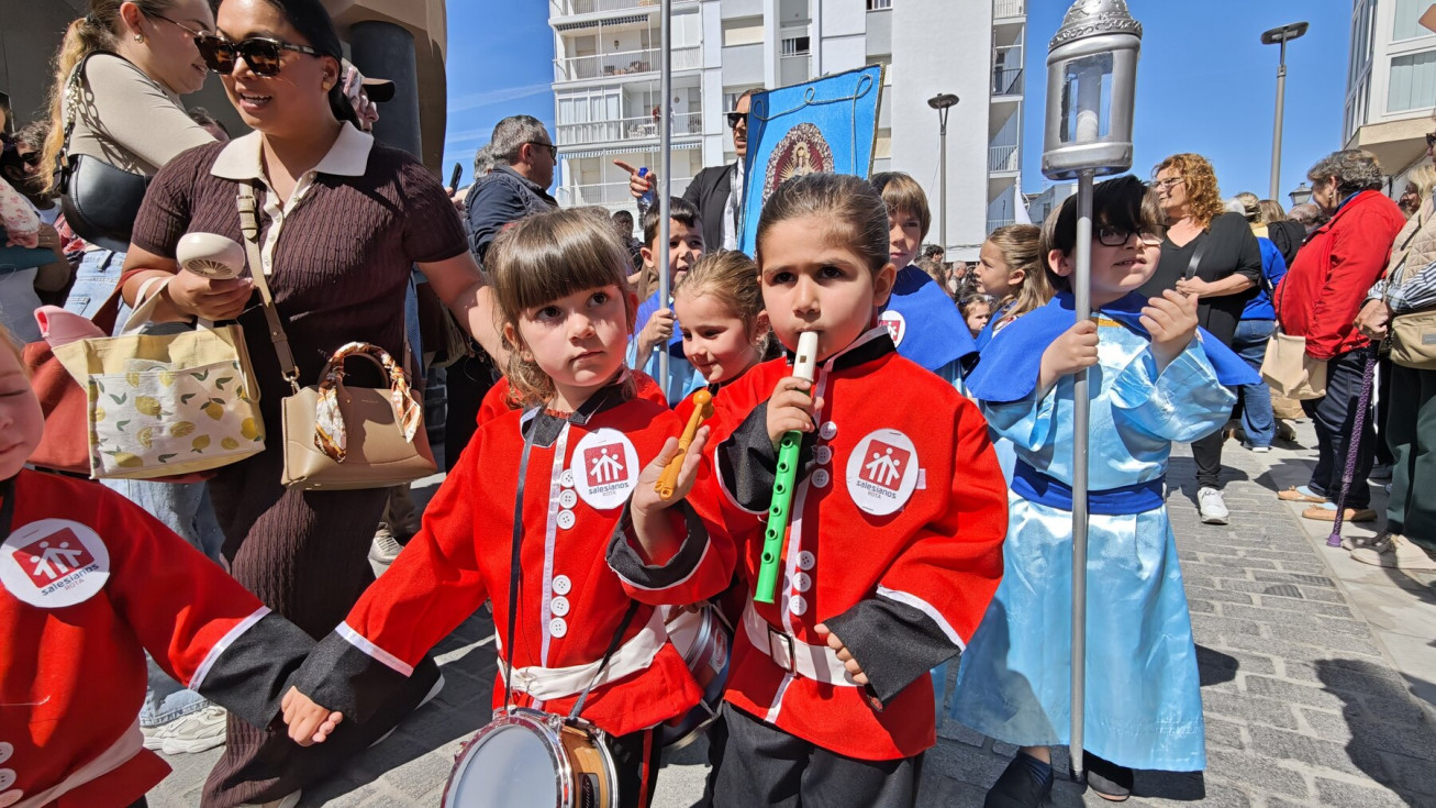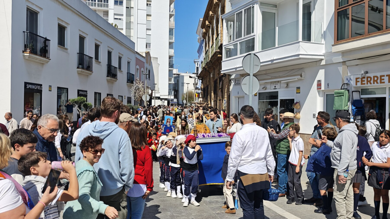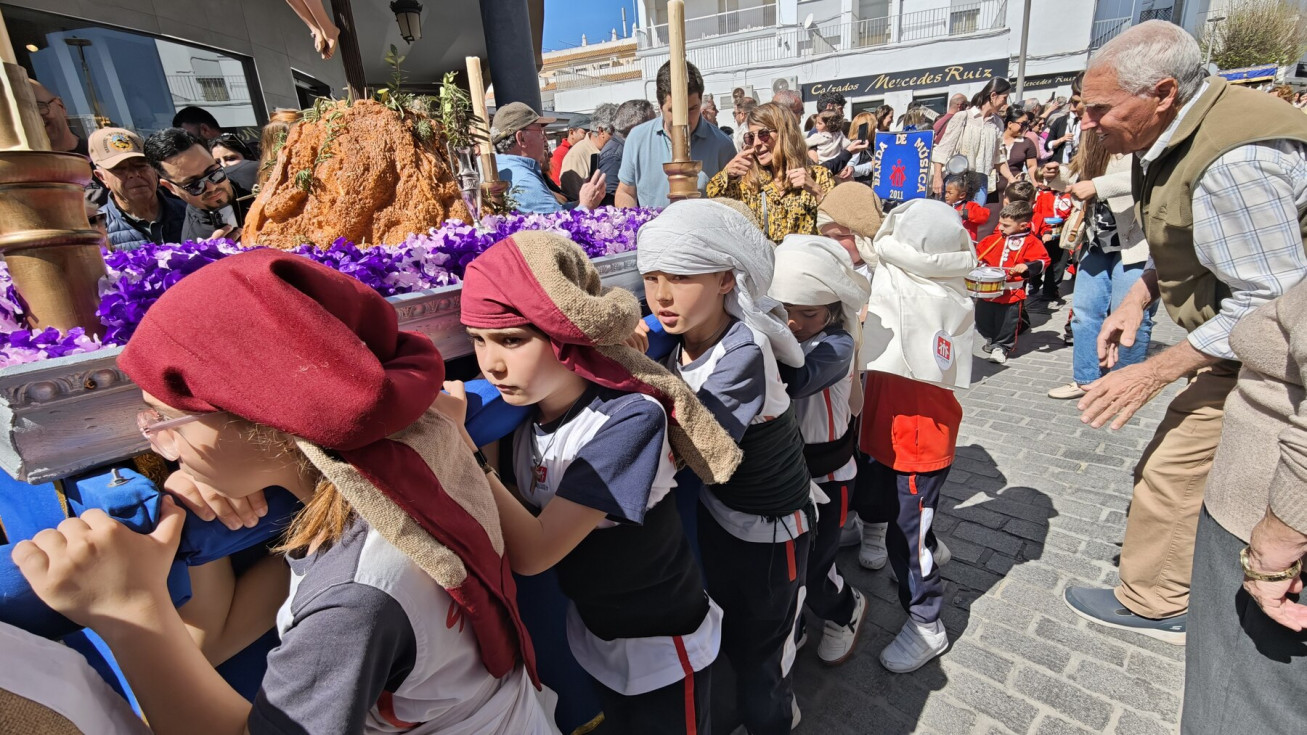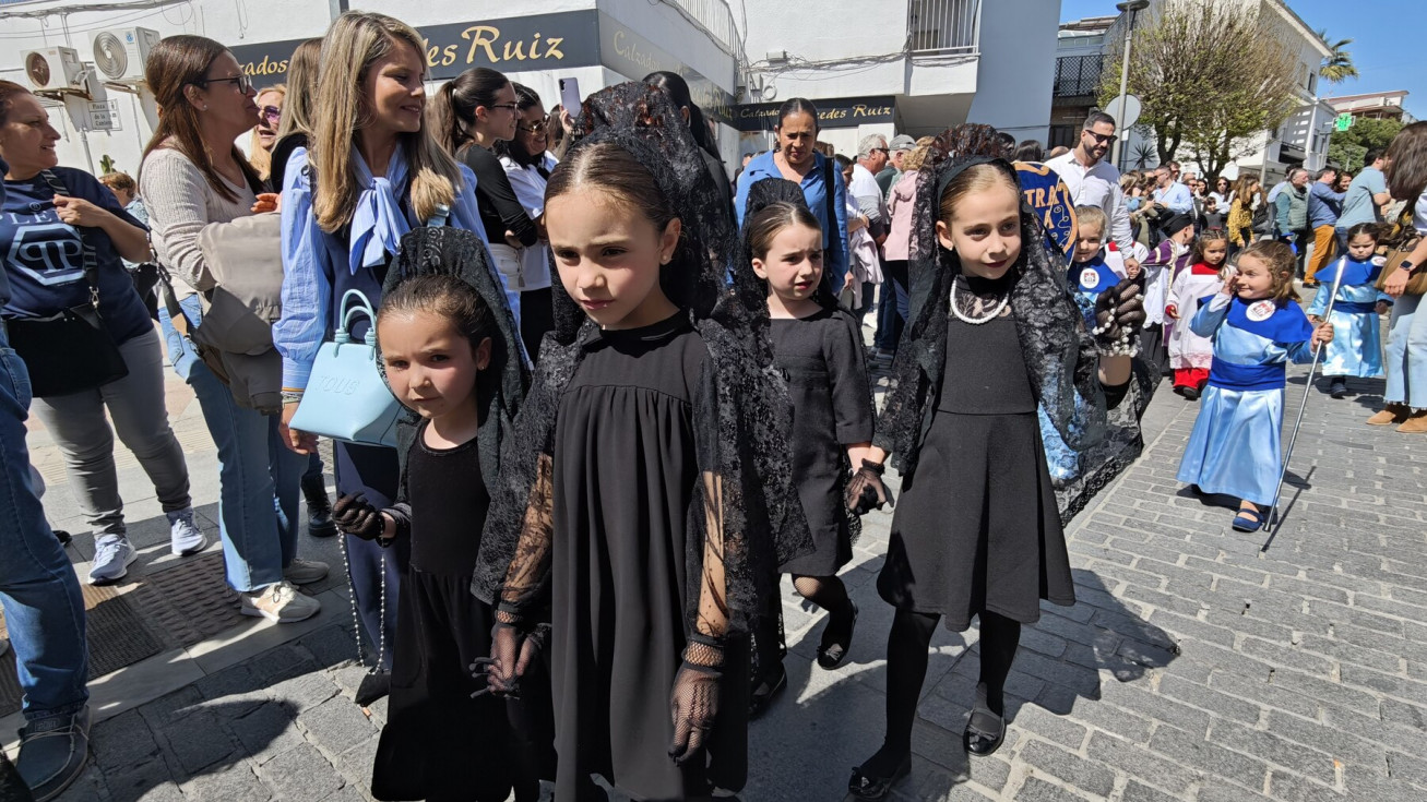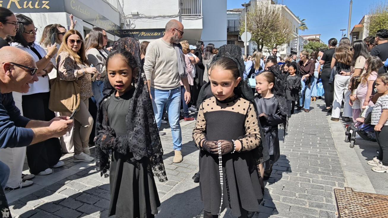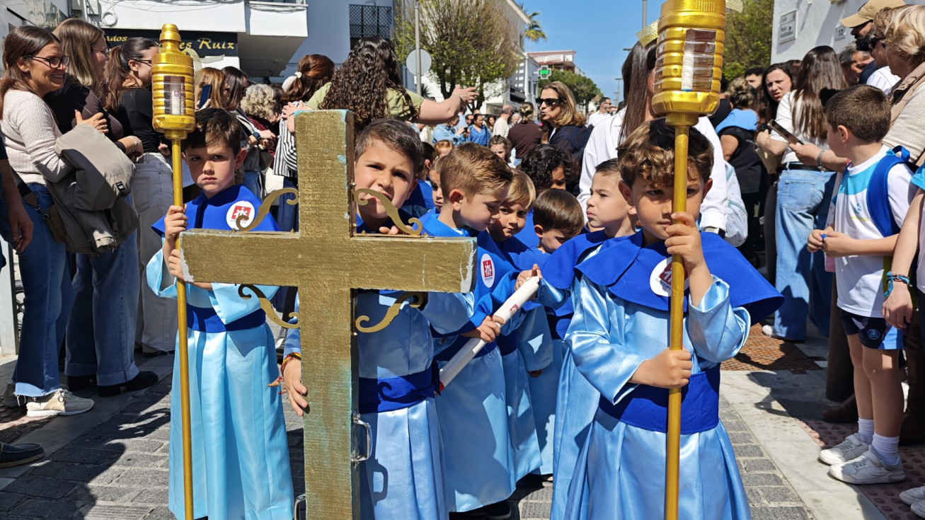 Sin duda, el colegio religioso aprovecha para que los escolares sean parte de una salida procesional al estilo de las muchas que verán en los próximos días y con ello, inculcarles la tradición y el mensaje, pero además, sirve de revulsivo para la localidad porque son muchas familias y vecinos los que acudan para verlos desfilar.