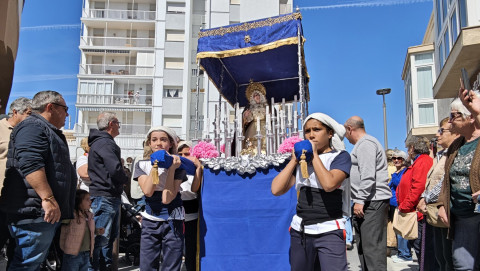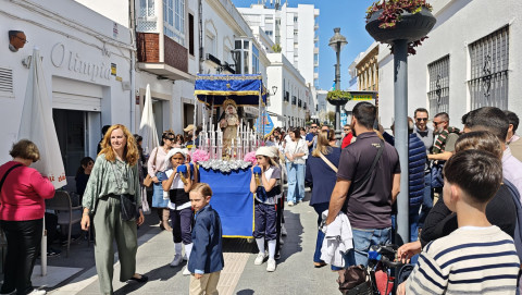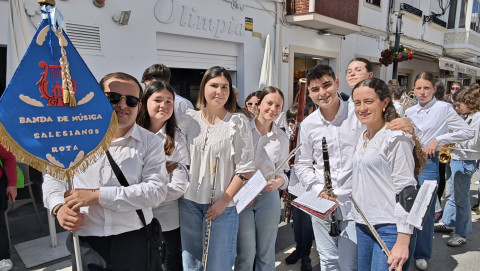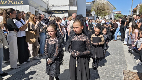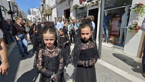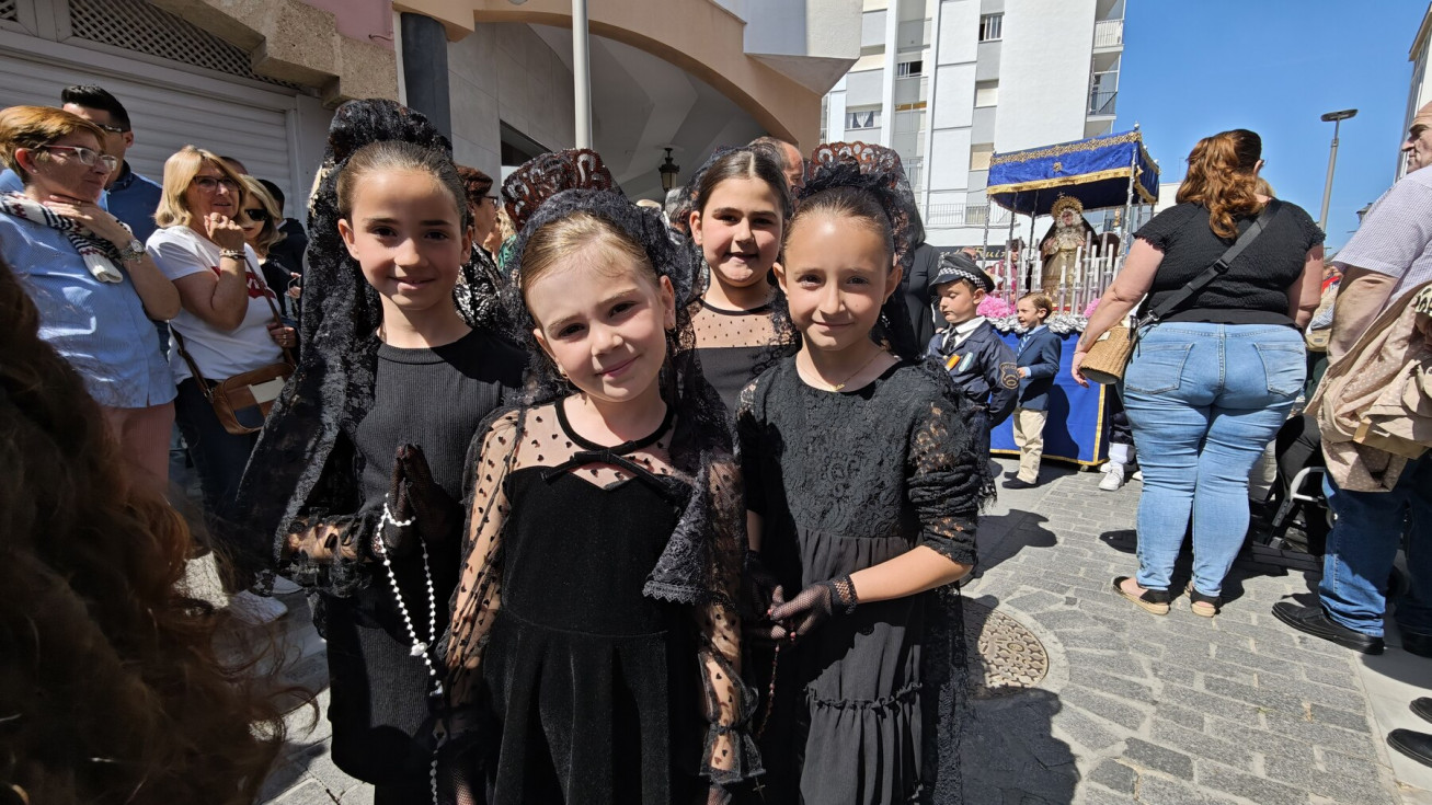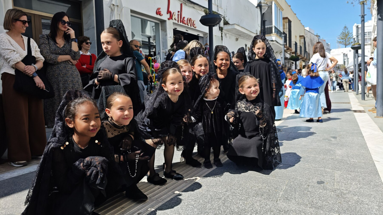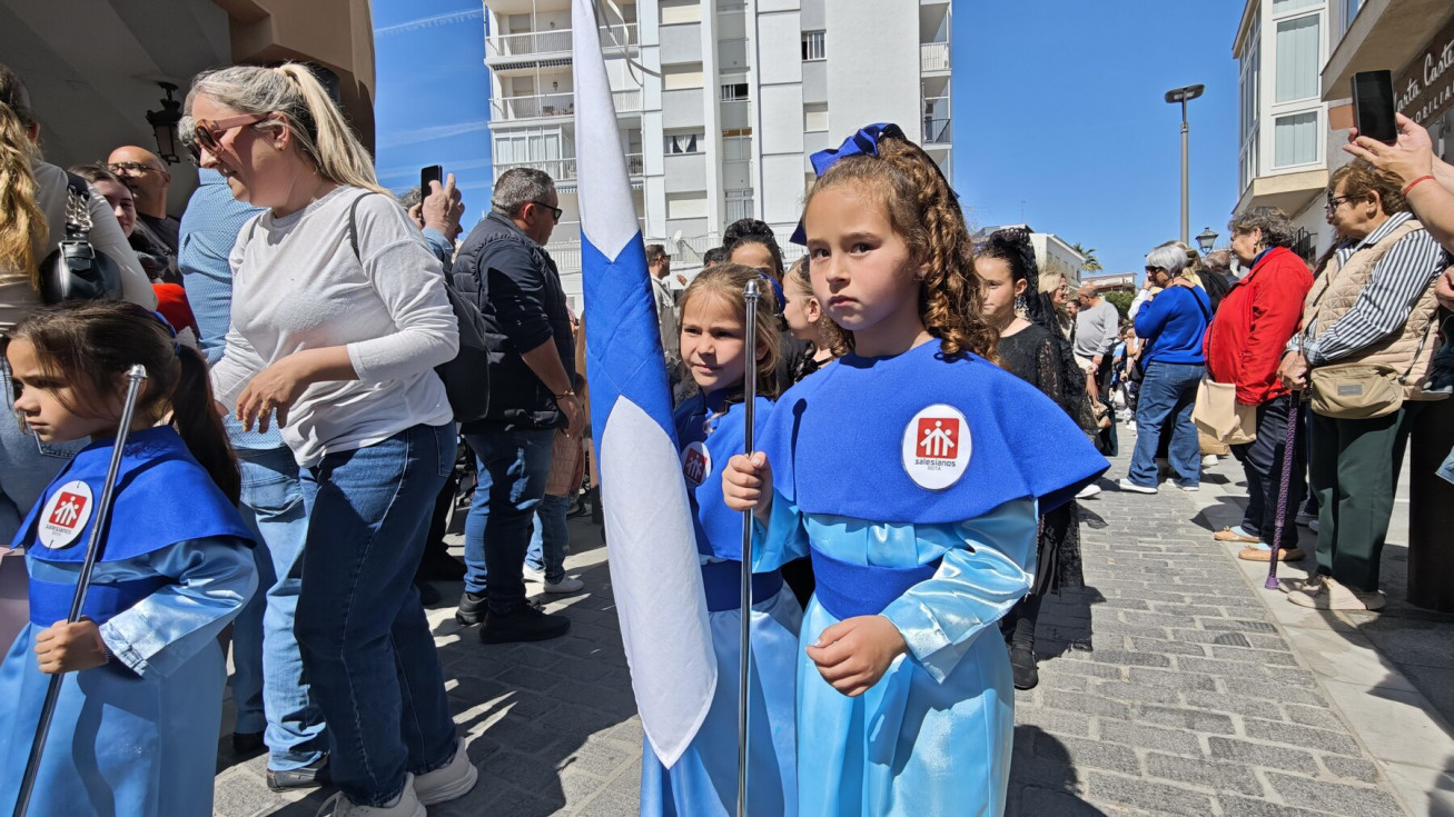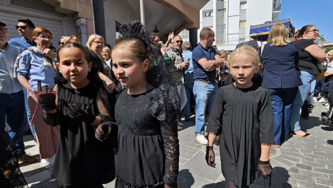 Como cada Viernes de Dolores, el centro de Rota se ha llenado de público sobre las doce del mediodía esperando ver la procesión infantil que cada año protagonizan los alumnos del colegio Salesianos que participan de forma activa en esta actividad.