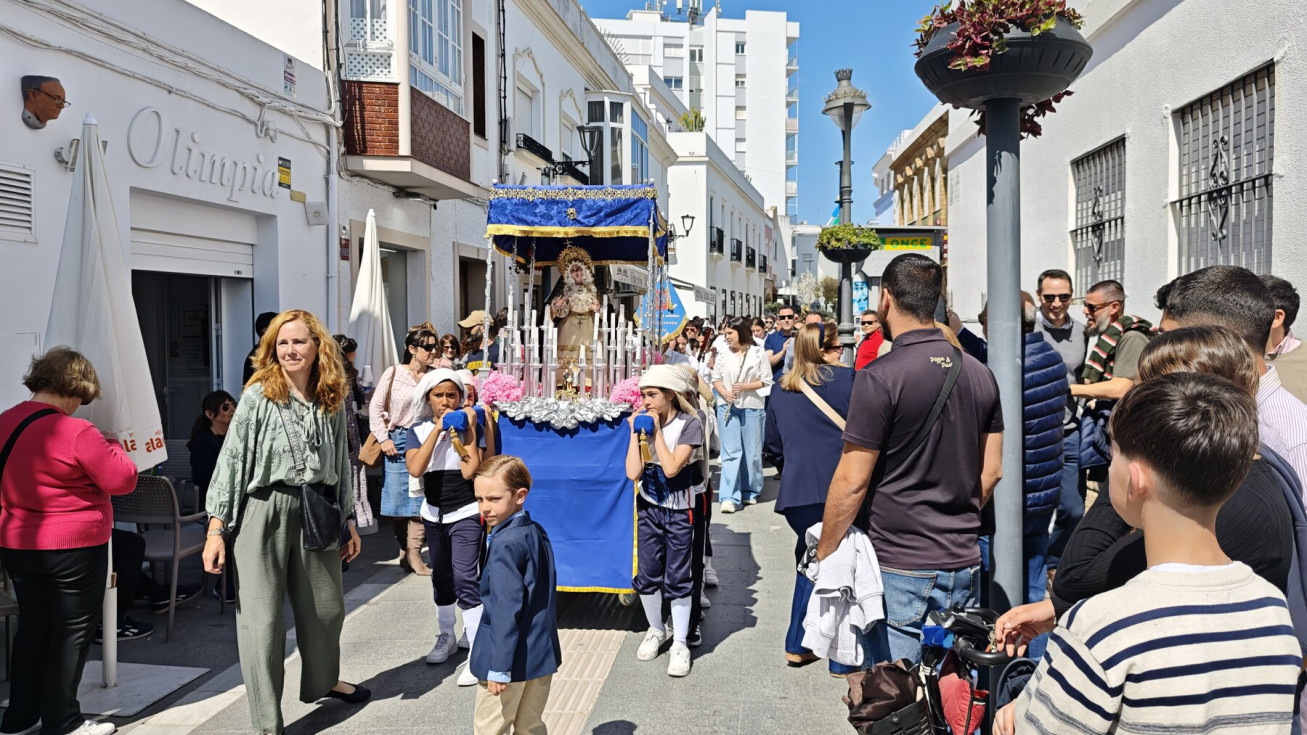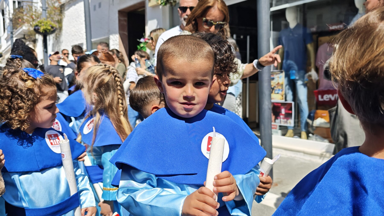El revuelo y el alboroto, muy alejados de las estaciones de penitencia que se vivirán en breve con la llegada de la Semana Santa, son en parte, la seña de identidad de esta particular salida procesional que desprende espontaneidad y alegría con algo de desorden, pese a los intentos de padres colaboradores y profesores por mantener la línea.