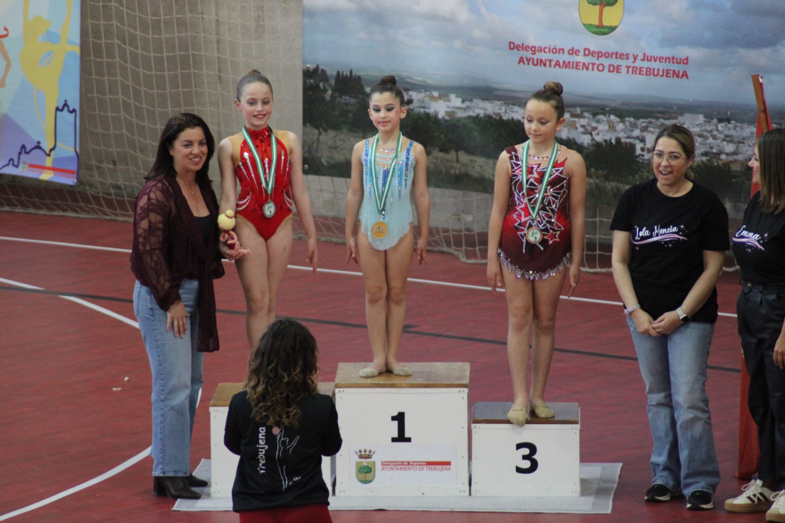 El pasado fin de semana, una nueva delegación de gimnastas de la EFI Meva de Rota se trasladó a Trebujena para participar en el Torneo de Gimnasia Rítmica de la ciudad vecina consiguiendo excelentes resultados y consiguiendo subir al podio en varias ocasiones.