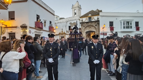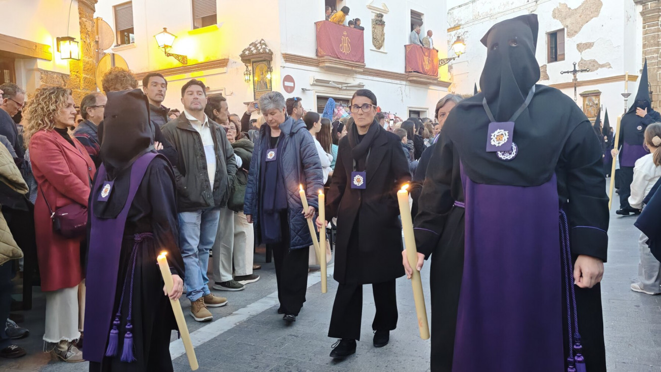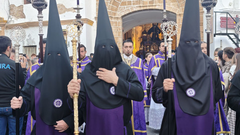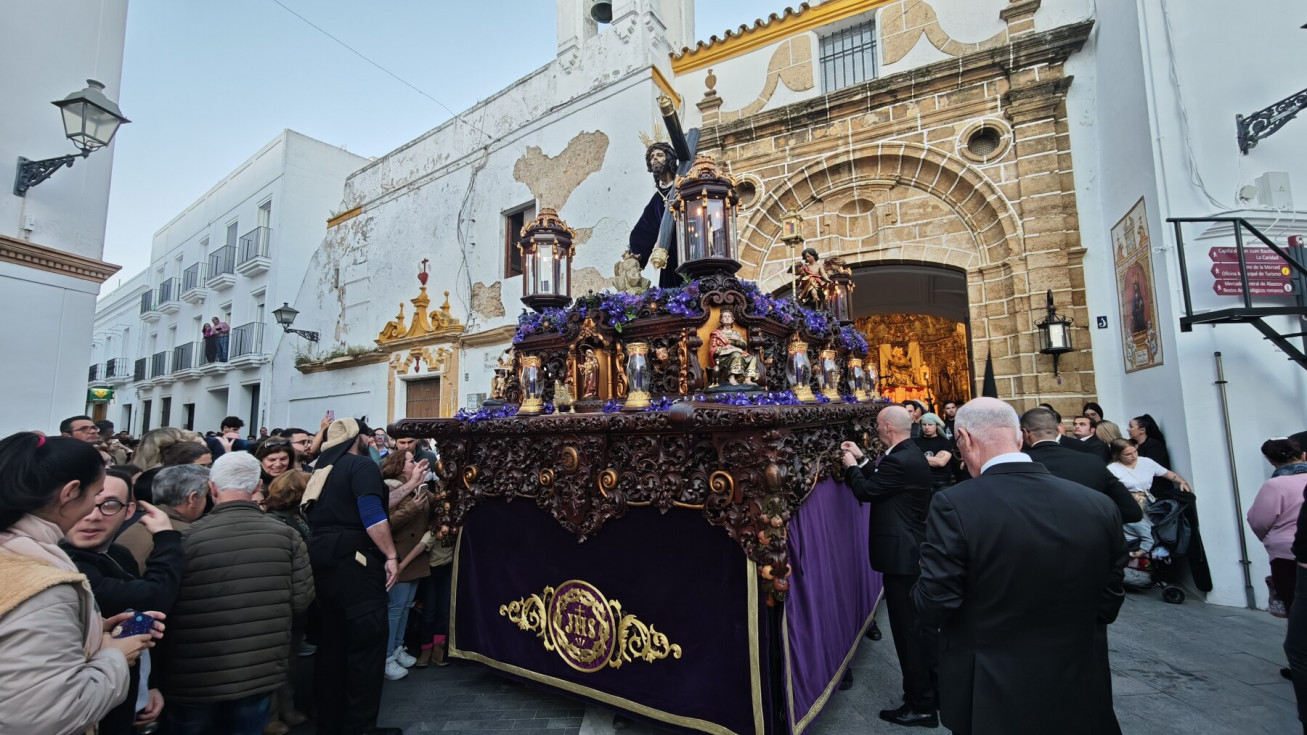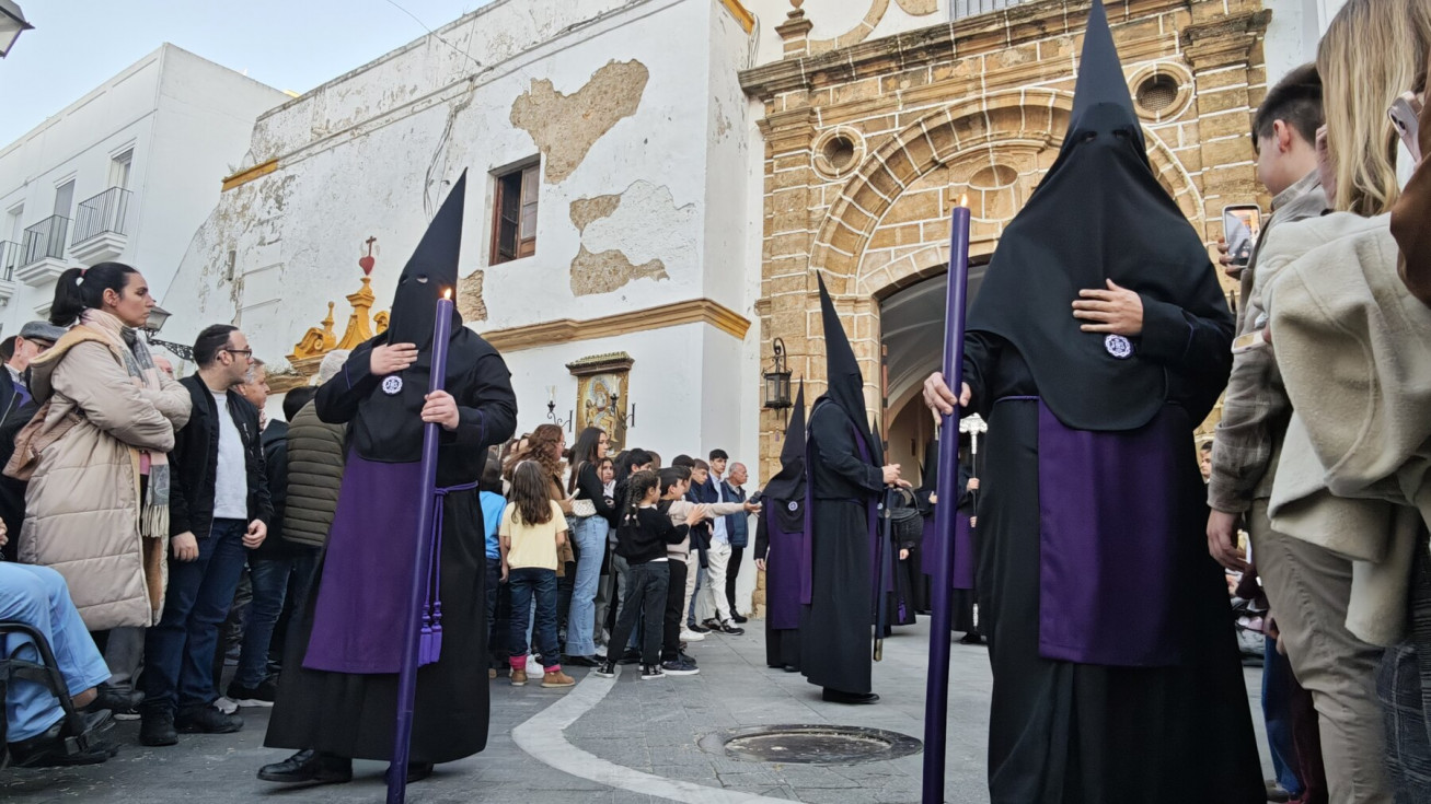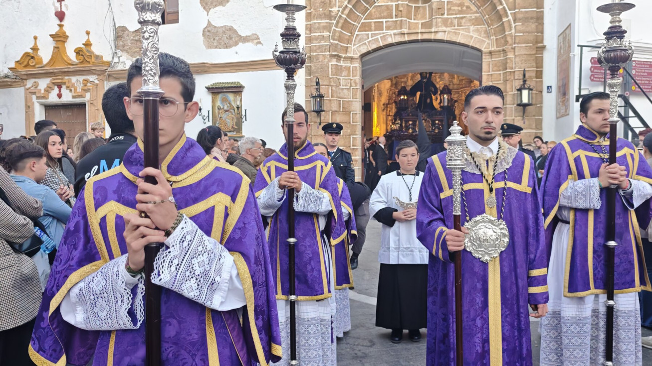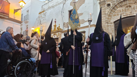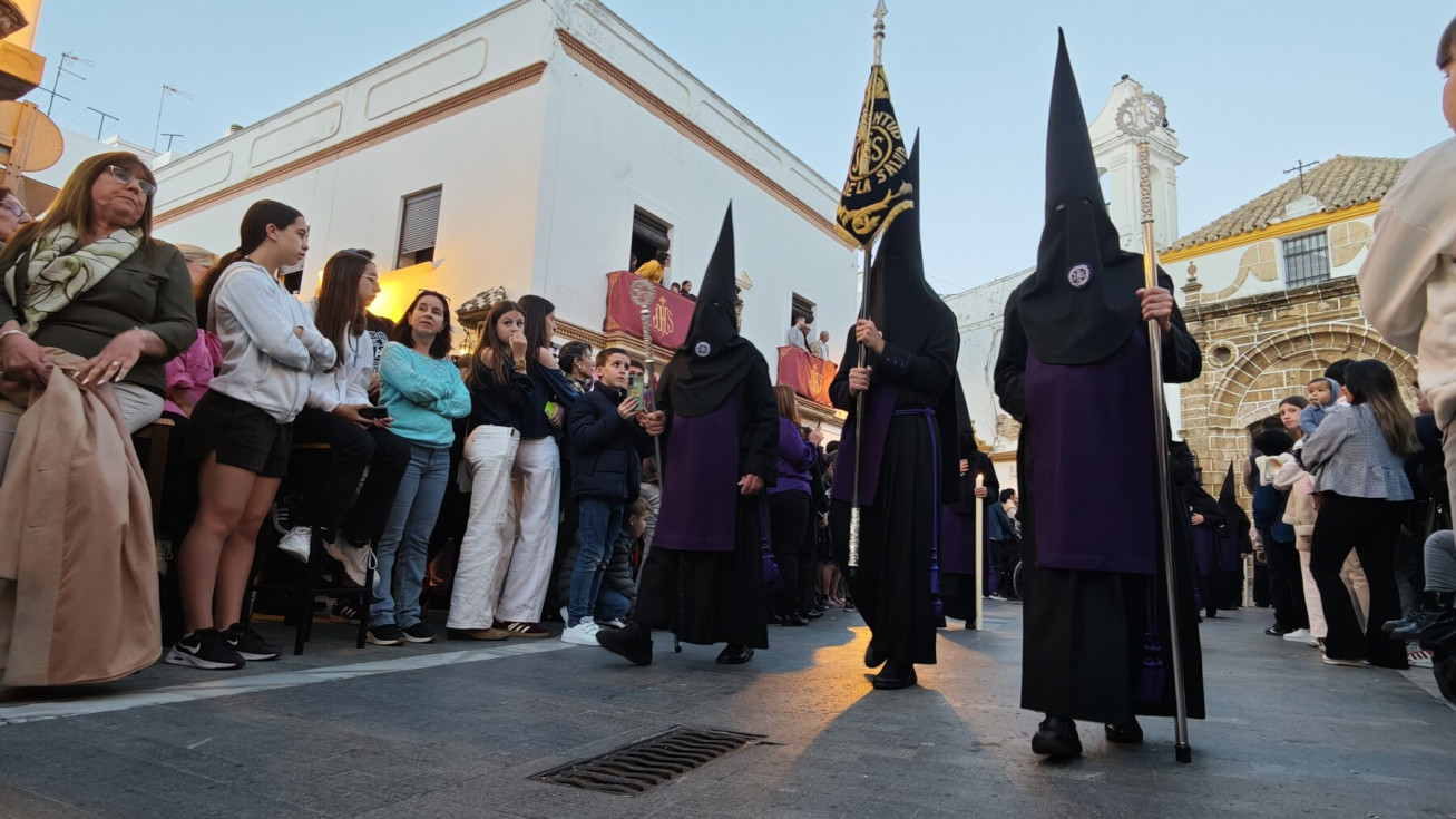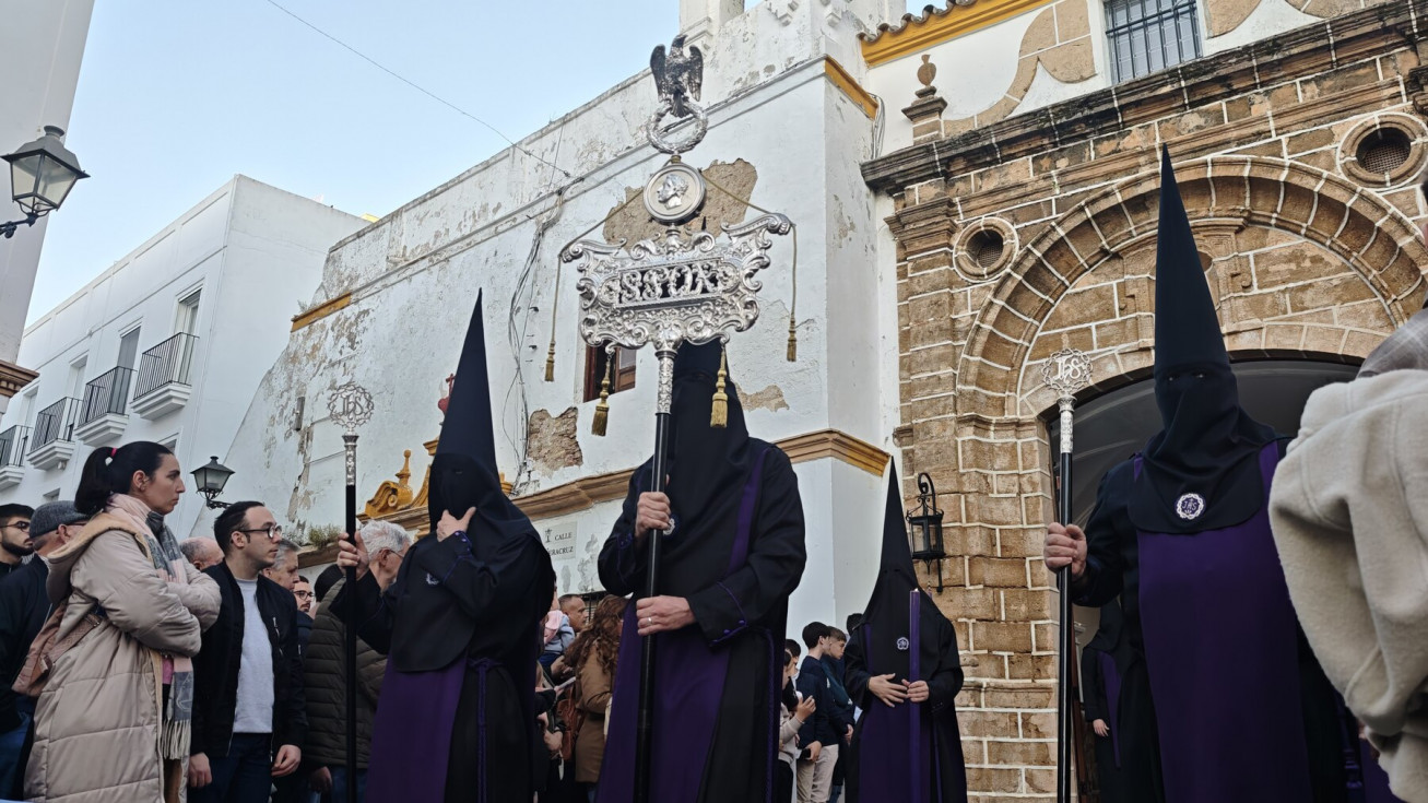 Las puertas de la capilla de la Caridad se abrieron a las 20.30 horas de un Miércoles Santo de temperaturas suaves que animó a cofrades y turistas a salir a la calle para disfrutar de una de las salidas procesionales más sobrias de la Semana Santa de Rota.