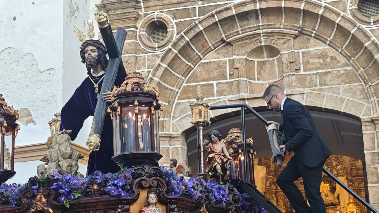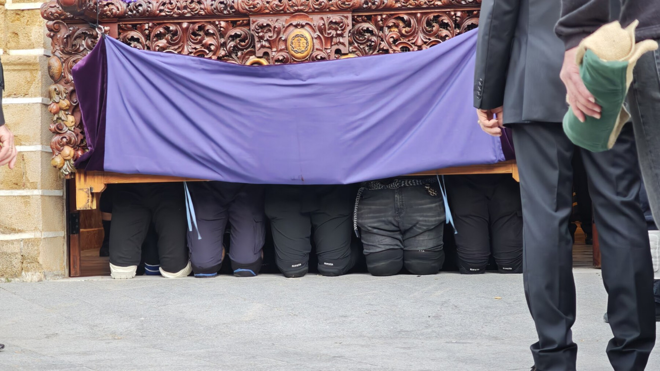 Aunque se tarde algo de tiempo hasta que el cortejo al completo está en la calle para iniciar la estación de penitencia, es desde el primer momento cuando se empieza a ver el resultado de meses de ensayos de las cuadrillas que son los pies de Jesús y su madre. Este año, Jesús de la Salud, que representa la tercera caída camino del Calvario cargando con su cruz, ha vuelto a estar guiado en su paso por el capataz Joaquín Bandarra Martínez, todo un veterano al frente sumando ya 40 años, que contrasta con el estreno de José Manuel García Corbeto como capataz de la virgen que, aunque lleva años formando parte del grupo de capatacía que lideraba Manuel Pizones, se ha quedado al frente tomando el mando para dirigir a una cuadrilla que conoce bien.