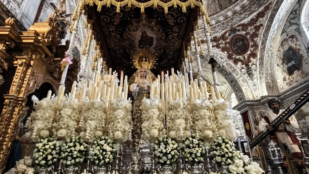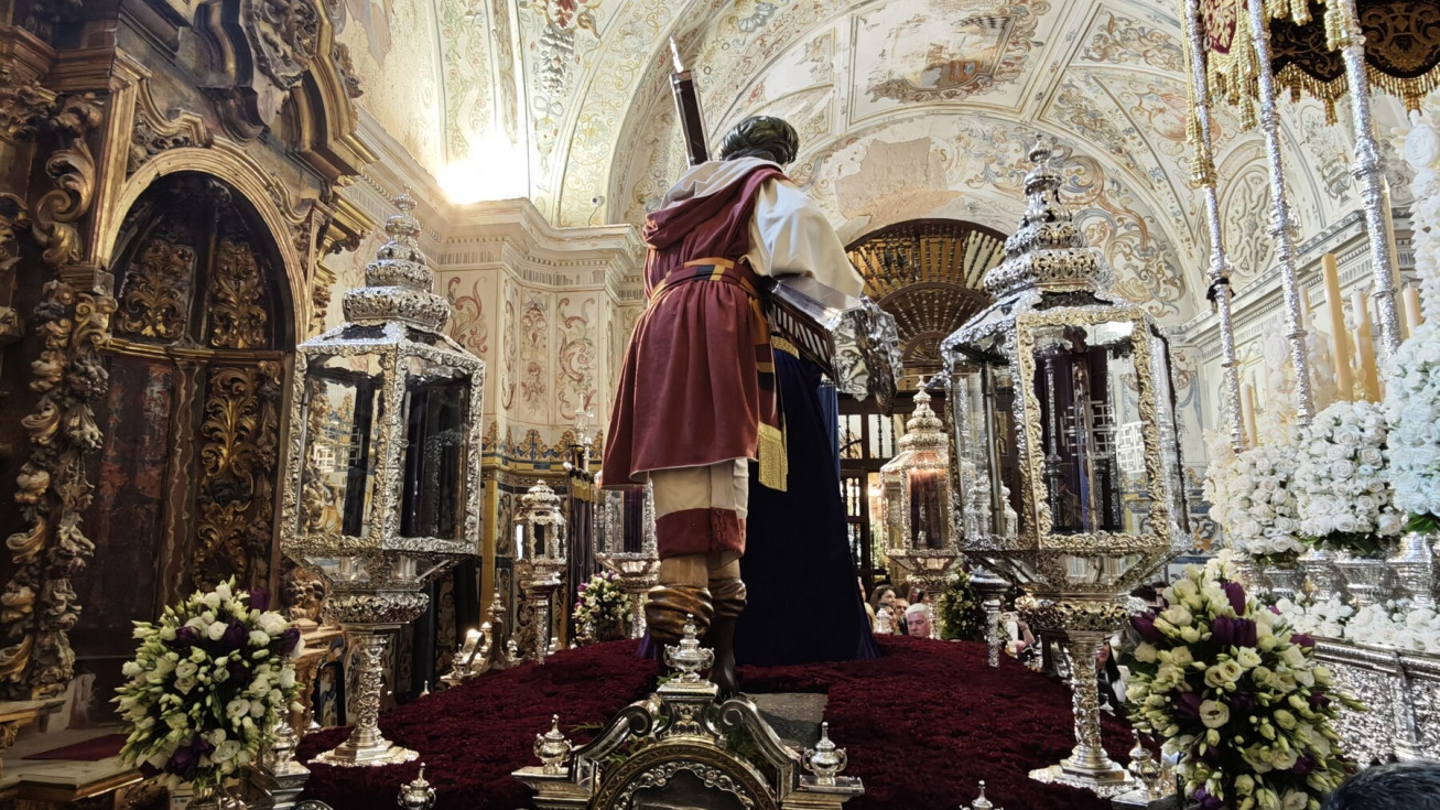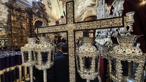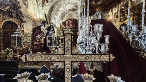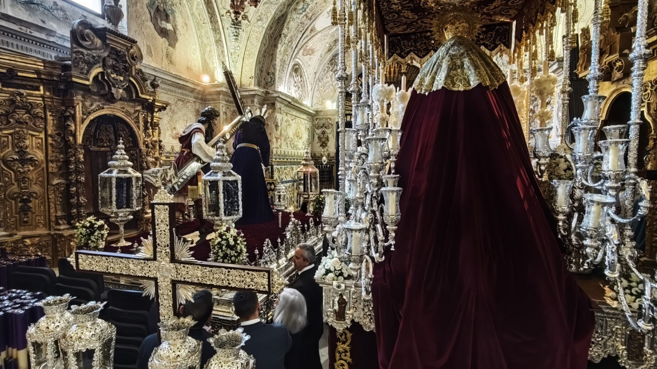 Esta mañana, preparado en su paso junto a María Santísima de la Amargura, listos para iniciar su estación de penitencia a las 2 de la madrugada, el alcalde de Rota, Javier Ruiz, junto a miembros de la Corporación municipal y de la junta de gobierno, así como fieles y devotos, han participado en este momento que representa la vinculación histórica de Jesús Nazareno con su pueblo.