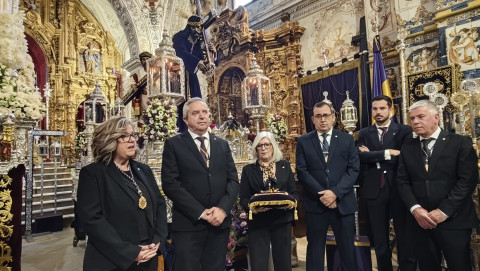 El alcalde de Rota, Javier Ruiz Arana, ha destacado no solo el trabajo que viene haciendo la hermandad para organizar la salida procesional sino el que realiza todo el año, ayudando a los más necesitados y cuidando de los enseres y el patrimonio que atesoran.
