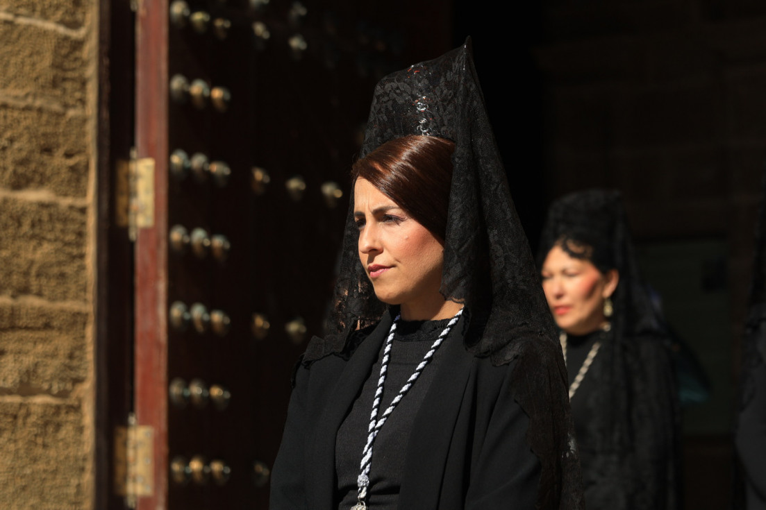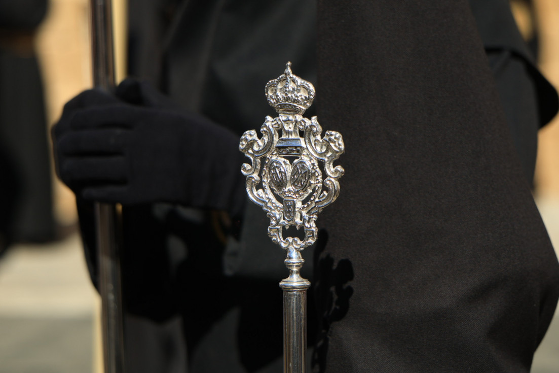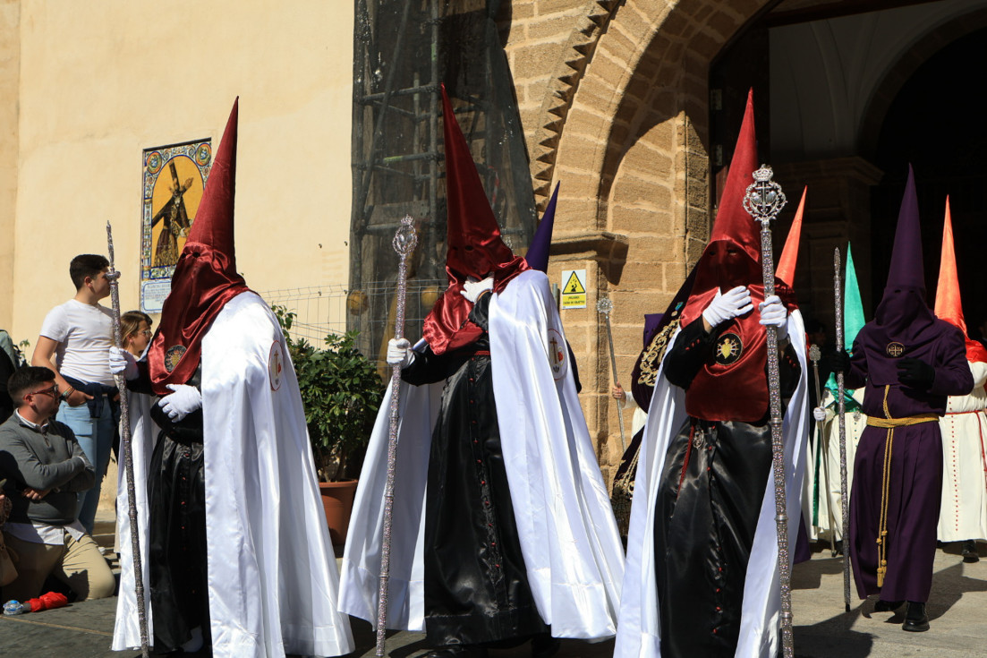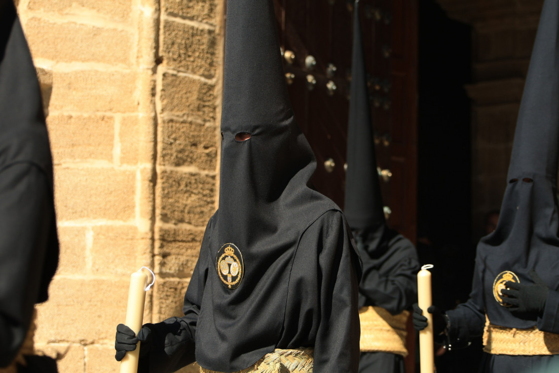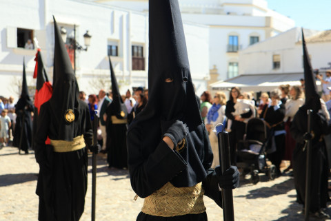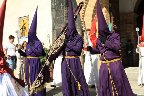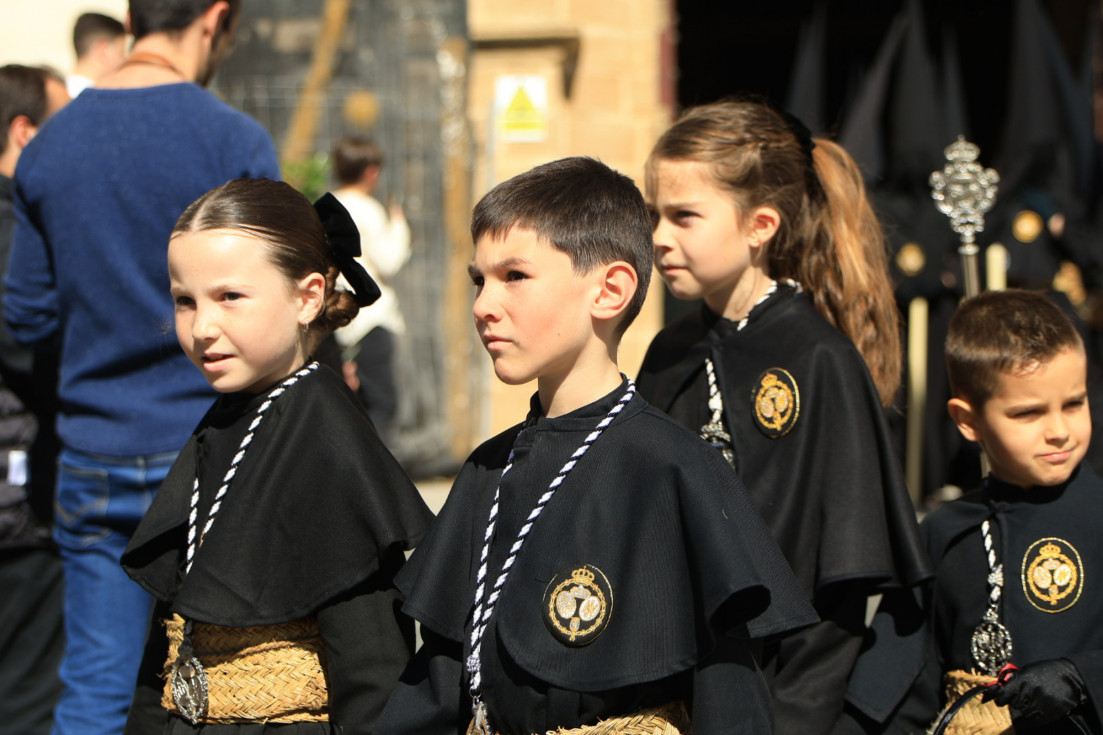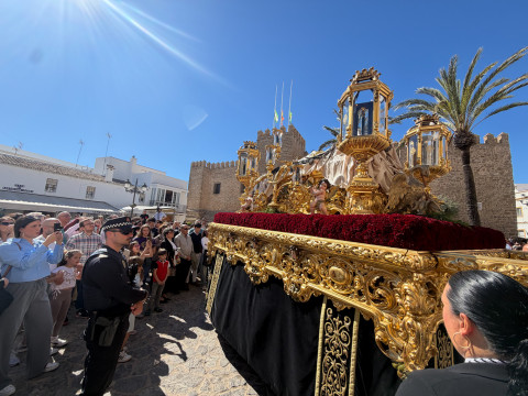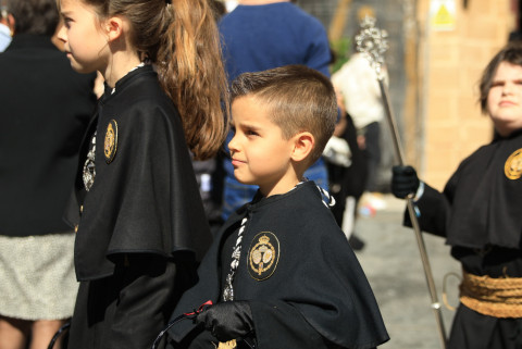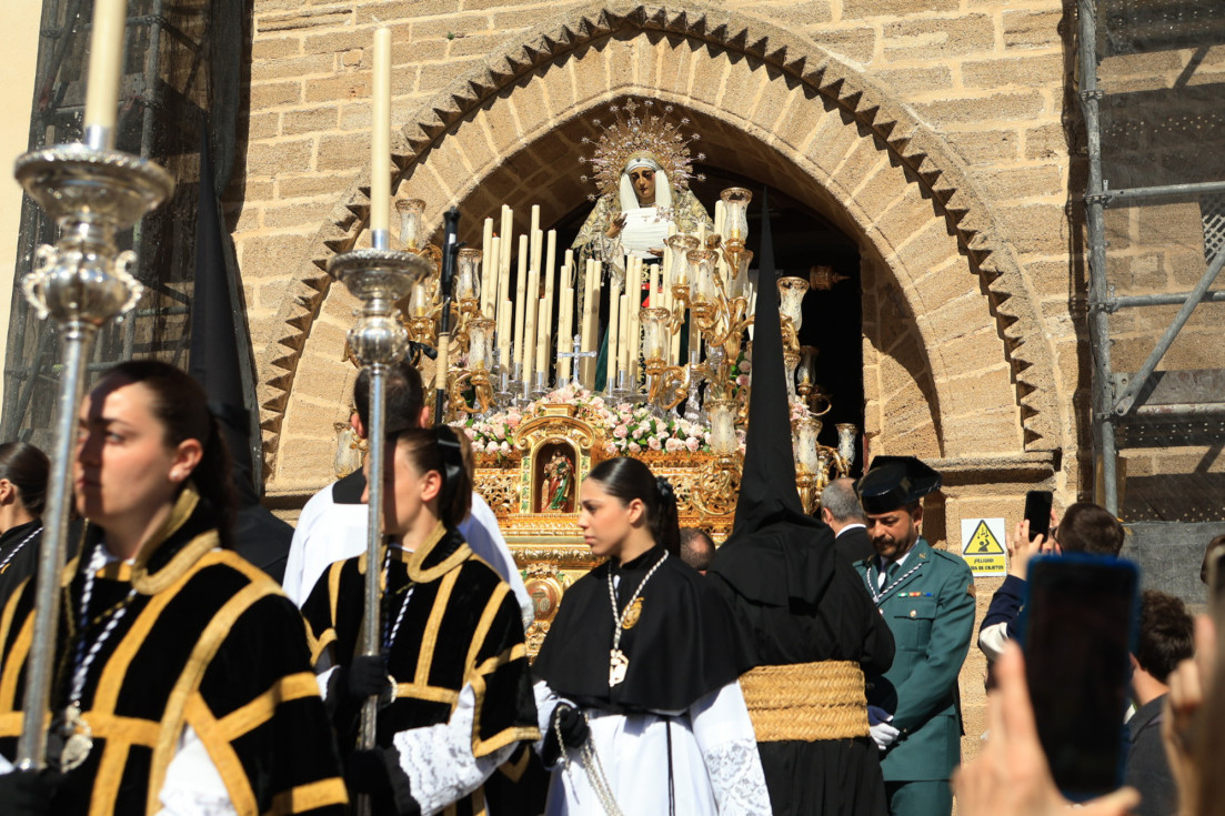 Con hábito negro con cola y cinturón de esparto, los 115 hermanos portaban cirios e insignias por las calles de una localidad que se vuelca con esta salida en la que destaca el grupo de mujeres de mantilla, la pavera o la representación del Almirante de la Base y la Guardia Civil, además de la presencia de hermanos de otras hermandades que se abrían paso por el casco histórico durante casi cuatro horas, tiempo en el que los dos pasos caminaron de manos de los capataces Manuel Jesús Fénix Real con el Cristo yacente y Juan José Cañas Martín-Niño, que se estrenaba al frente de la cuadrilla con su equipo llevando a la virgen que, aunque perdió en esta estación de penitencia uno de los puntos referentes como el paso por debajo del Arco de la Villa, debido a las obras de la plaza de España, pudo disfrutarse en otros enclaves. El tono de solemnidad y recogimiento que marca el Sábado Santo tuvo su contraste en el bullicio de la calle.