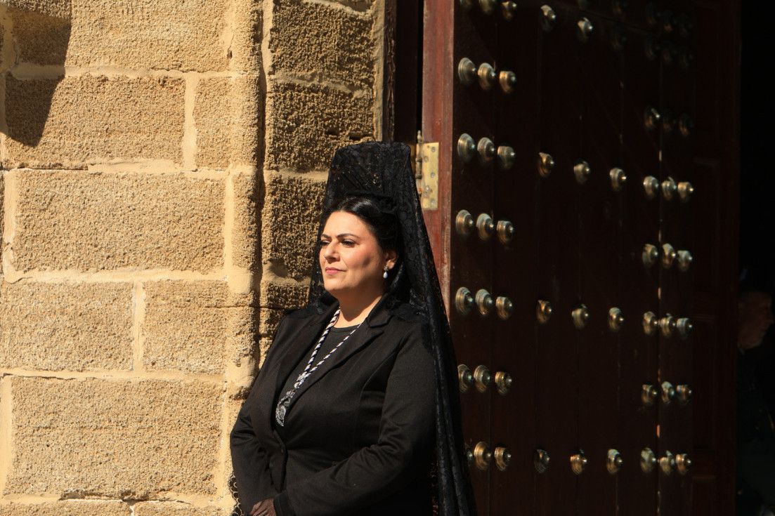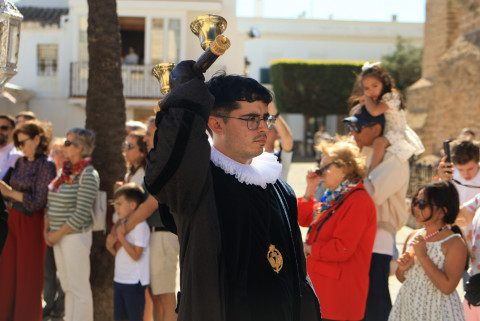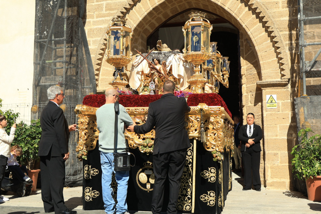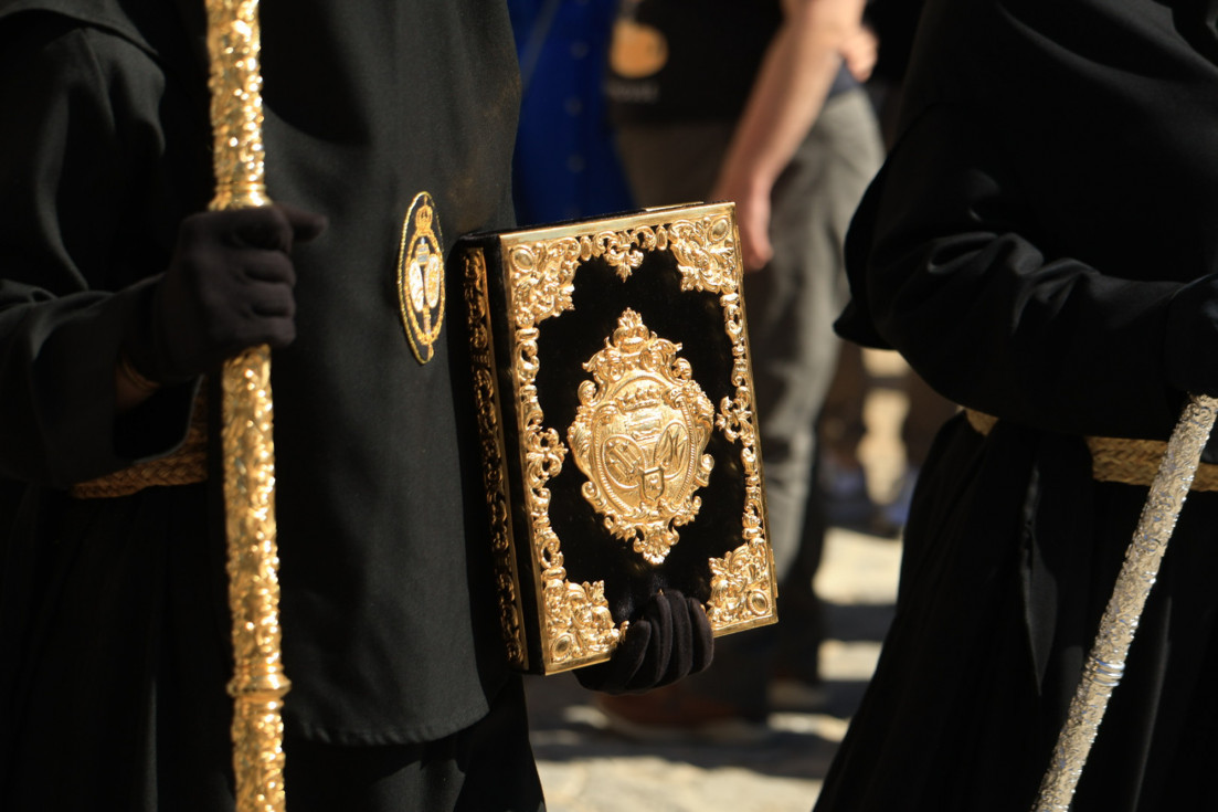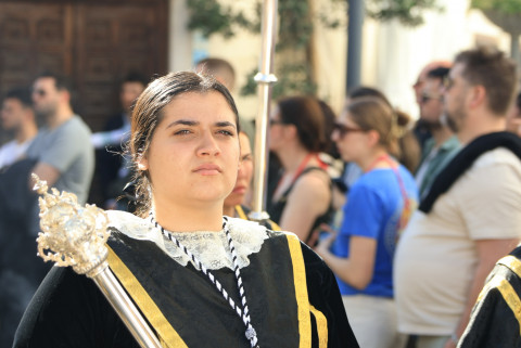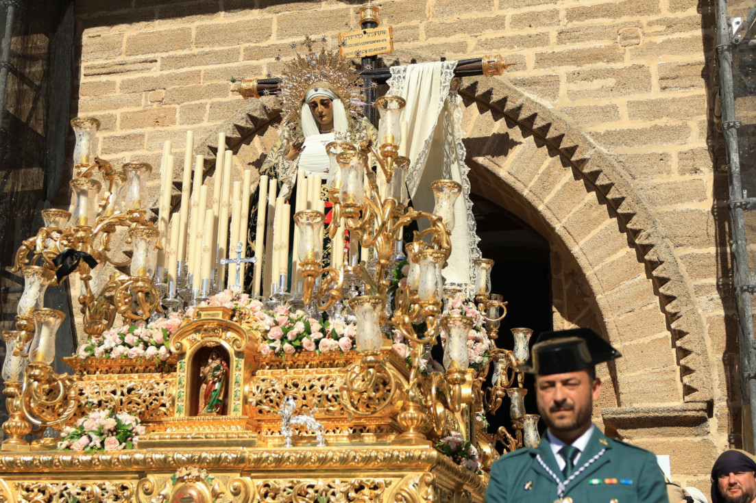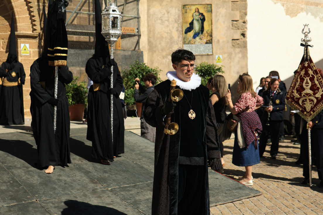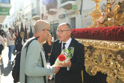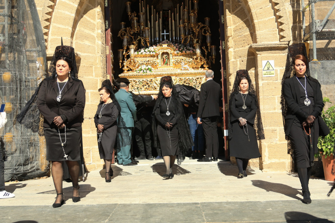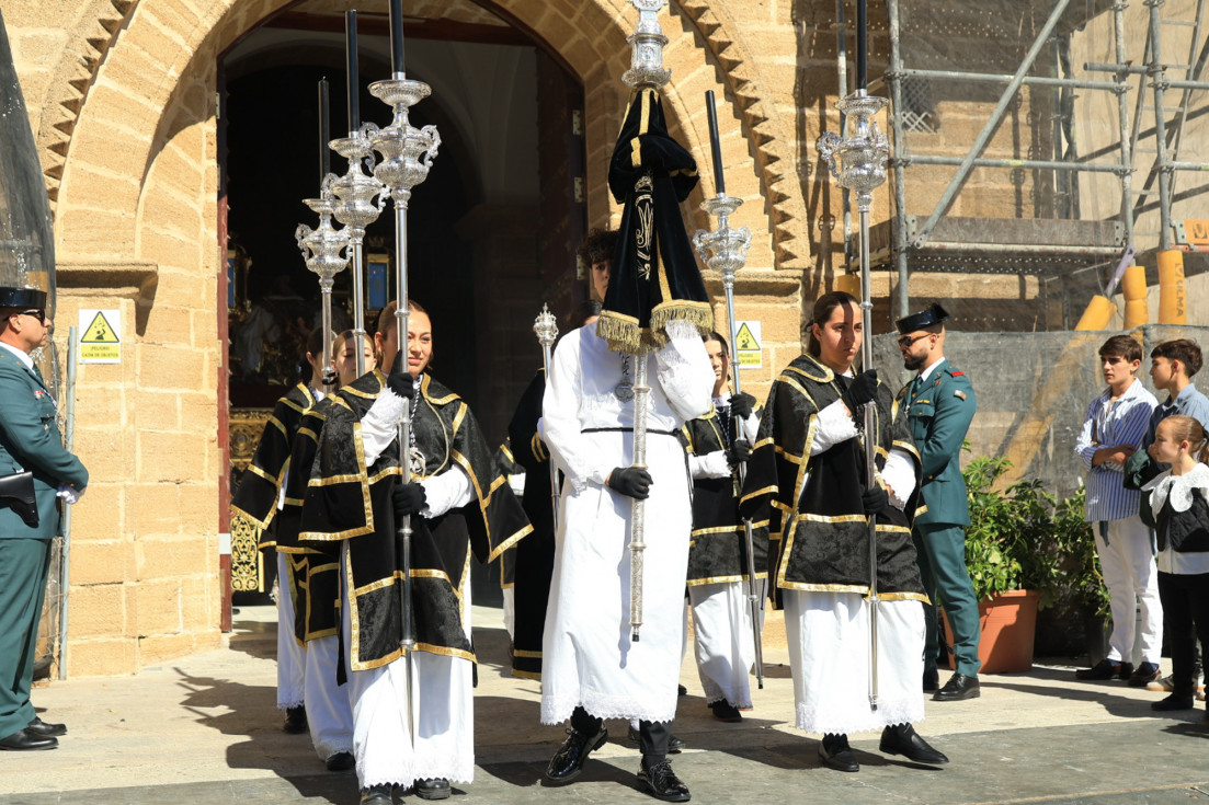 Con hábito negro con cola y cinturón de esparto, los 115 hermanos portaban cirios e insignias por las calles de una localidad que se vuelca con esta salida en la que destaca el grupo de mujeres de mantilla, la pavera o la representación del Almirante de la Base y la Guardia Civil, además de la presencia de hermanos de otras hermandades que se abrían paso por el casco histórico durante casi cuatro horas, tiempo en el que los dos pasos caminaron de manos de los capataces Manuel Jesús Fénix Real con el Cristo yacente y Juan José Cañas Martín-Niño, que se estrenaba al frente de la cuadrilla con su equipo llevando a la virgen que, aunque perdió en esta estación de penitencia uno de los puntos referentes como el paso por debajo del Arco de la Villa, debido a las obras de la plaza de España, pudo disfrutarse en otros enclaves. El tono de solemnidad y recogimiento que marca el Sábado Santo tuvo su contraste en el bullicio de la calle.