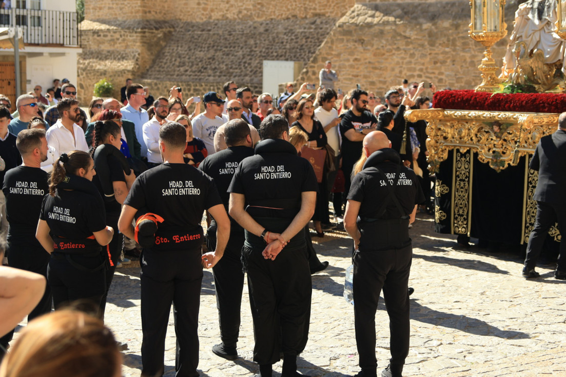 La Hermandad del Santo Entierro vivió una buena salida procesional con una recogida muy arropada y una plaza llena pese a la anticipación de hora, para despedir el penúltimo día de la semana en la que las hermandades dan testimonio de fe público. Se cerró con ella el ciclo de la pasión y muerte de Jesús quedando todo dispuesto para que, en pocas horas, las campanas anuncien la alegría de la Resurrección con la que se dará por terminada la Semana Santa.
