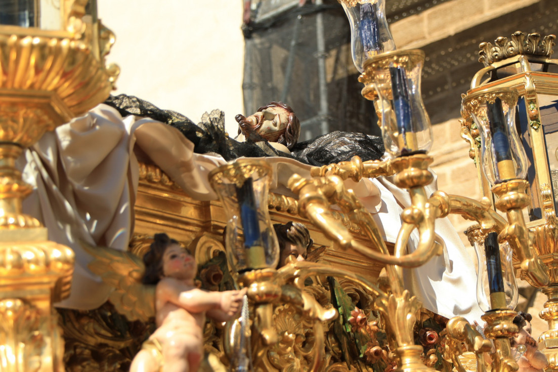 El sonido del muñidor que abría el cortejo de la Hermandad del Santo Entierro de Cristo y Soledad de María Santísima dio paso a un Sábado Santo espléndido en la calle no solo por el lucimiento de los titulares sino por el acompañamiento del buen tiempo, que permitió una estación de penitencia completa, aunque con una hora de recogida anterior a la anunciada. Ese hecho sorprendió a muchos ciudadanos que se vieron con la sorpresa de que el Cristo llegaba a la parroquia de la O bastante antes de lo esperado. De hecho, la cruz de guía estaba en capilla pasadas las 8 de la tarde.