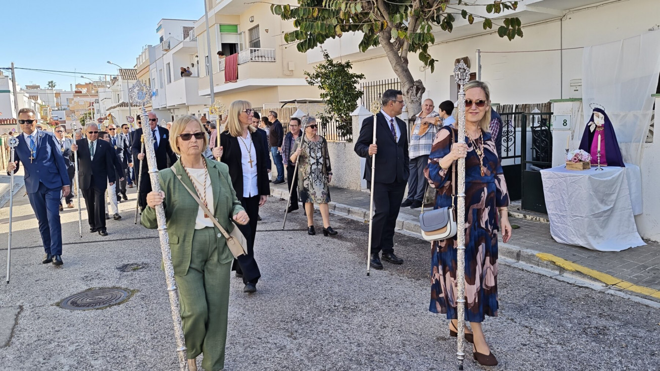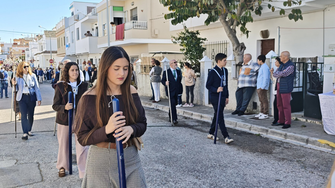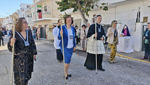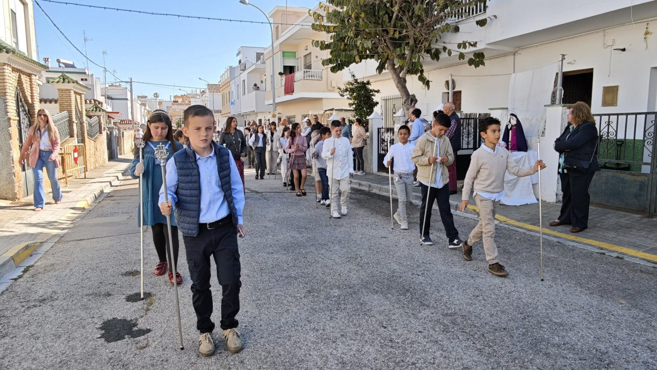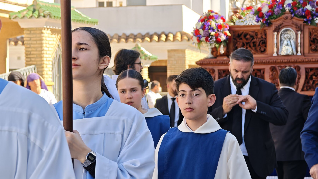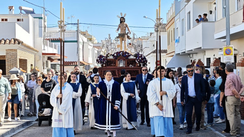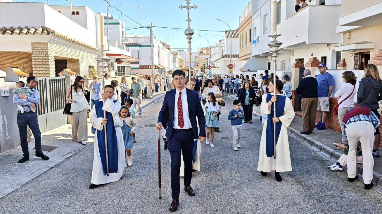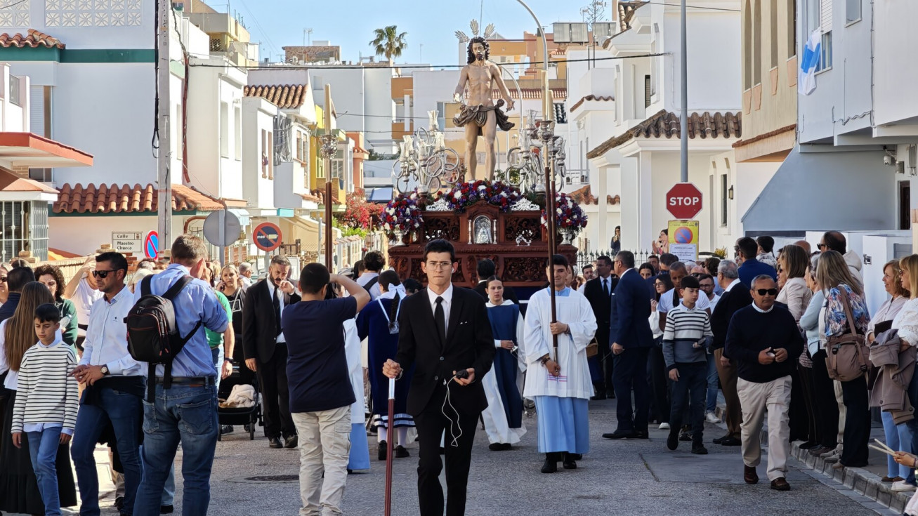 La procesión de Jesús Resucitado tiene un marcado sello de las Salesianas y de hecho, la intención es que la labor evangelizadora que se realiza con esta salida procesional se centre en esta zona de Rota, por eso, aunque el paso no llega al centro de la localidad, son muchos son los vecinos que han ido a ver al Señor resucitado en una mañana que ha acompañado y con la que se pone fin a las procesiones.