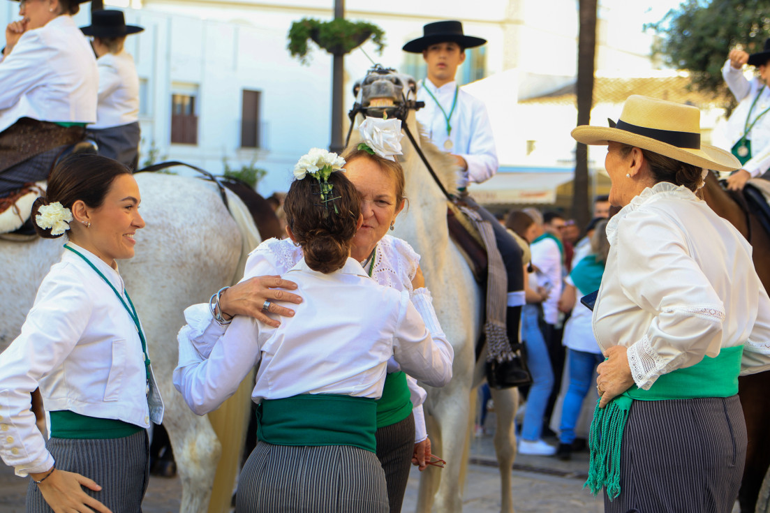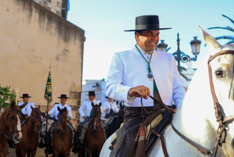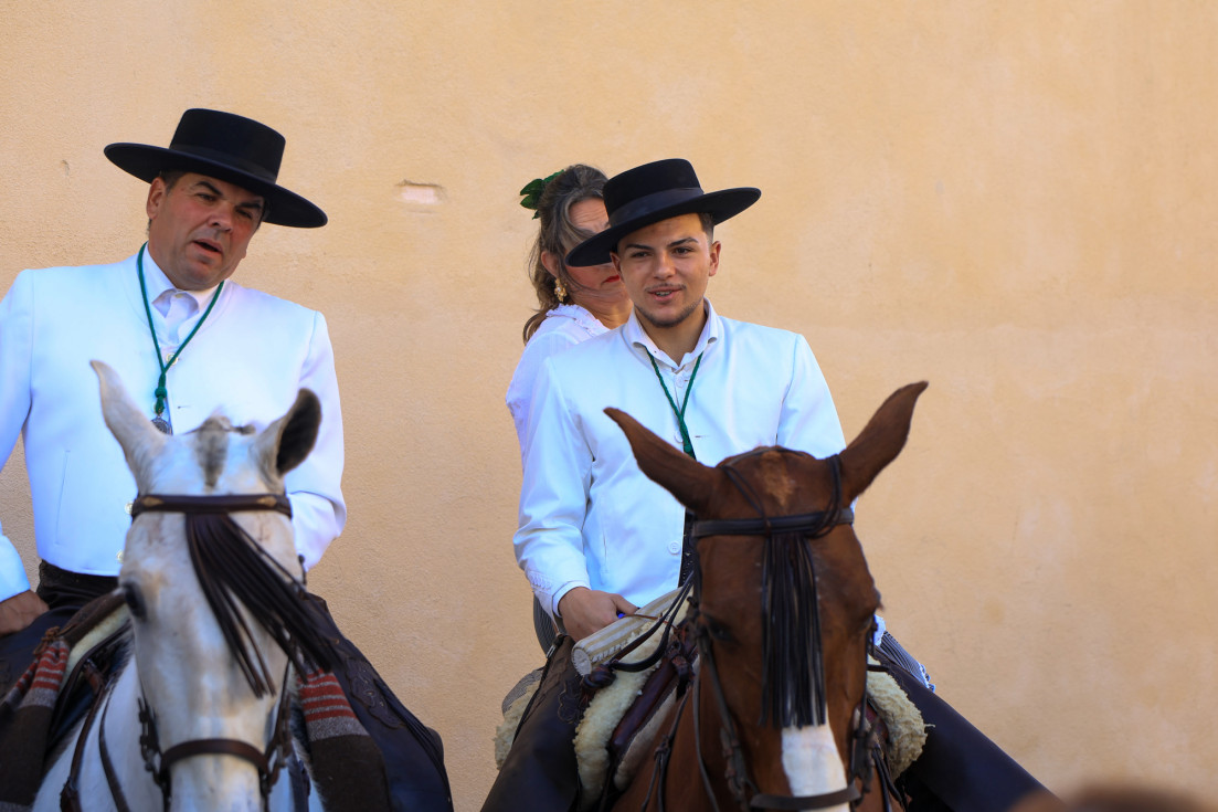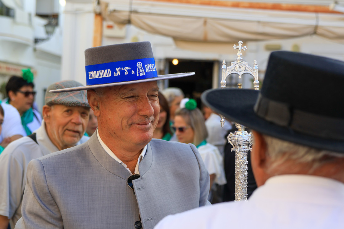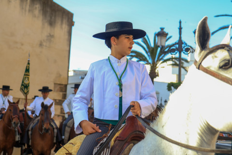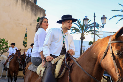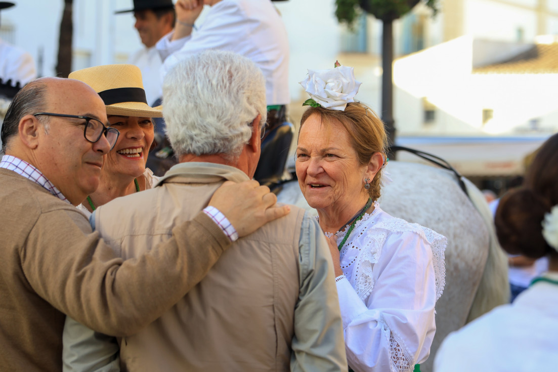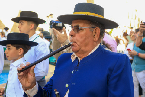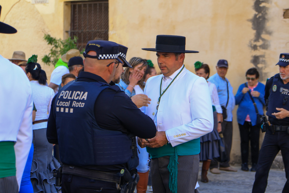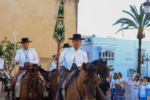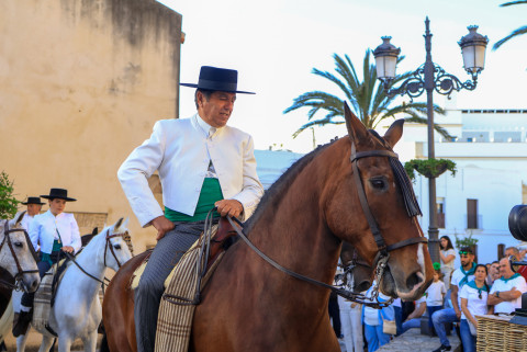 Como siempre, el pitero Antonio Vázquez acompaña con los sones de su pito rociero y los roteños que acompañan lo hacen cantando, especialmente, los grupos y peñas de las carrozas que cierran la comitiva.