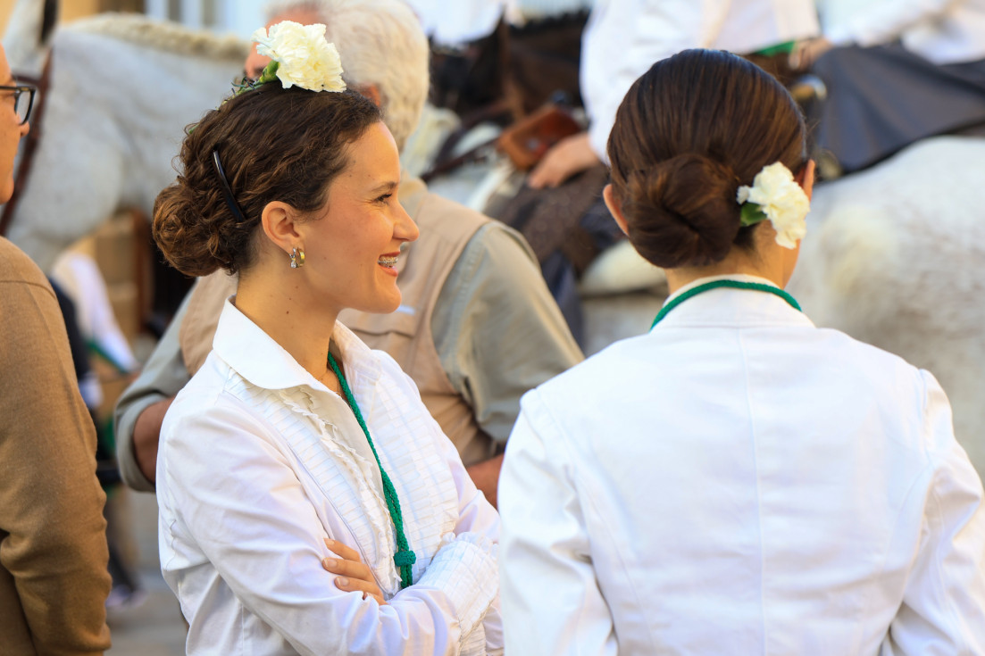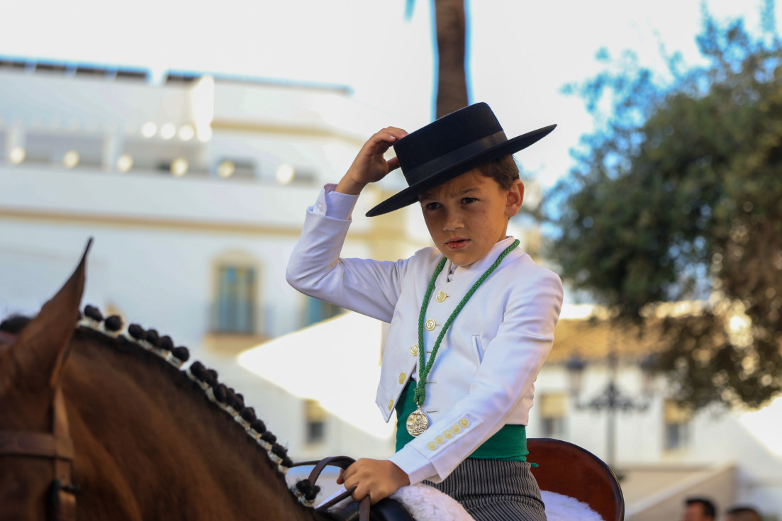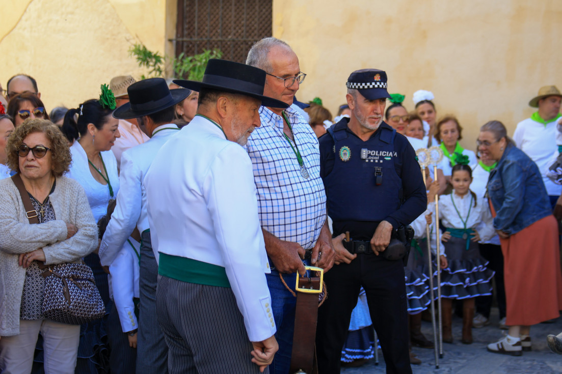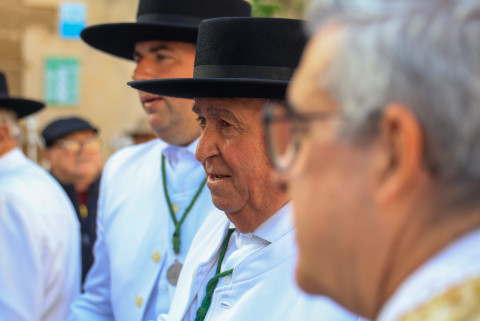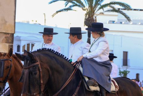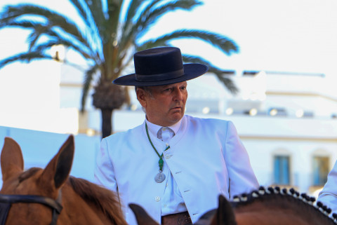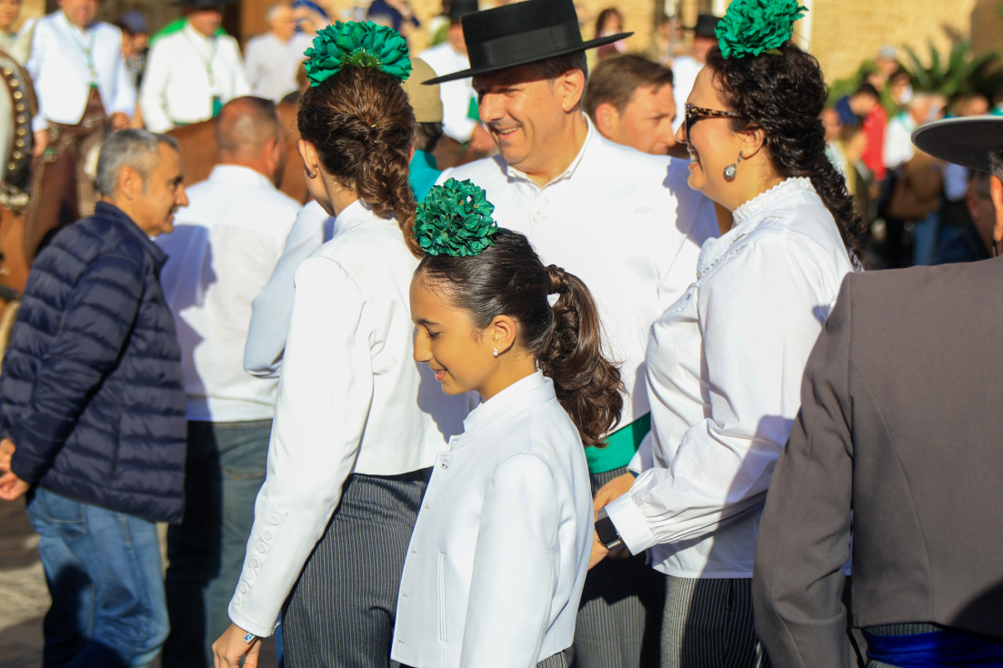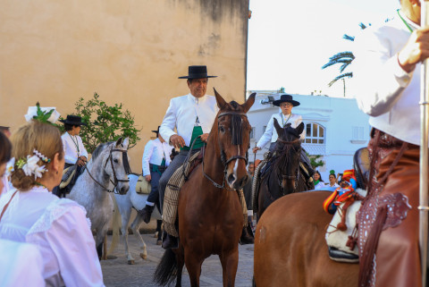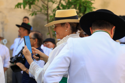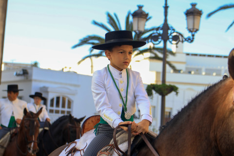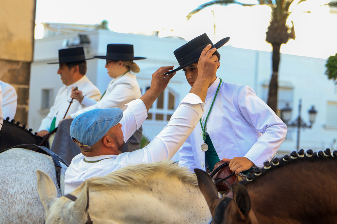 Como siempre, el pitero Antonio Vázquez acompaña con los sones de su pito rociero y los roteños que acompañan lo hacen cantando, especialmente, los grupos y peñas de las carrozas que cierran la comitiva.